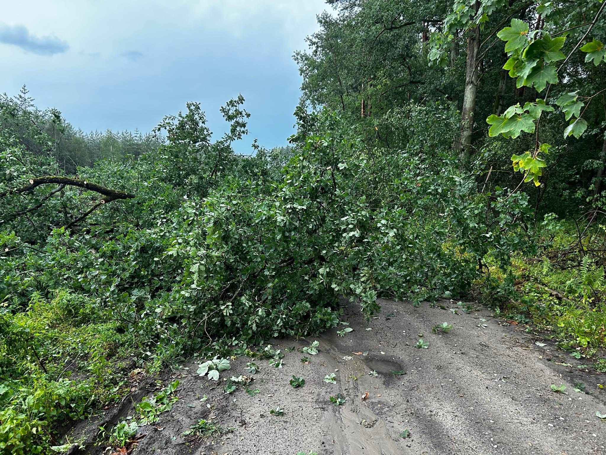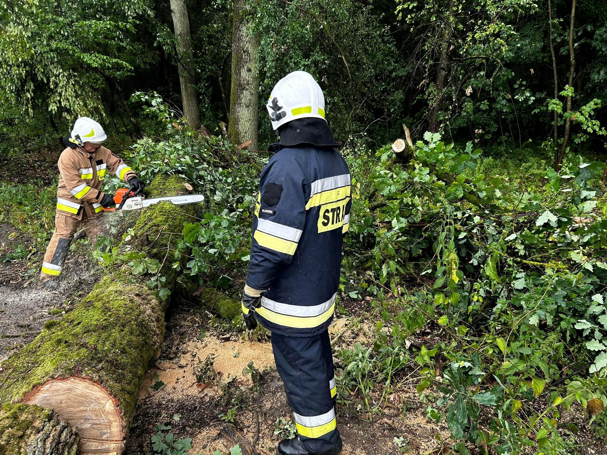 Szeroki zakres działań obejmował między innymi: zabezpieczenie miejsca zdarzenia, usuwaniu połamanych drzew i konarów z drogi, usuwaniu zwisających konarów oraz zabezpieczeniu linii energetycznej.