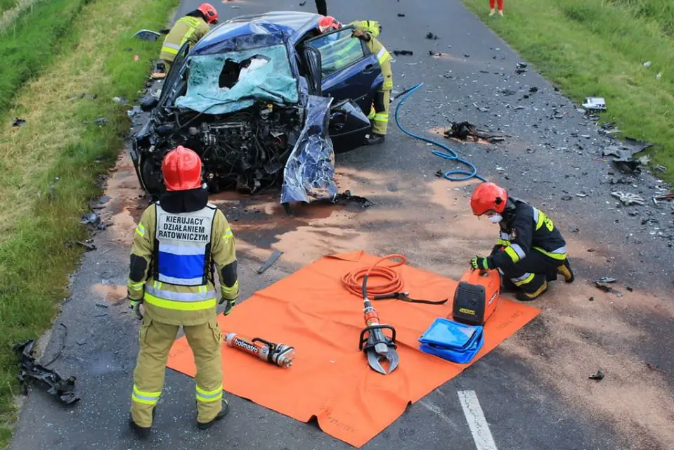 Kiedy strażacy dotarli na miejsce wypadku okazało się, że w rozbitym fordzie wciąż znajduje się jedna osoba. Jednak jej stan nie budził wątpliwości – osoba ta zginęła na miejscu. Przybyły na miejsce lekarz potwierdził zgon młodego mężczyzny. By wydobyć go ze zniszczonego auta strażacy musieli za pomocą sprzętu hydraulicznego usunąć cały bok pojazdu. Więcej szczęścia mieli dwaj mężczyźni jadący dostawczakiem, którzy trafili do pleszewskiego szpitala.