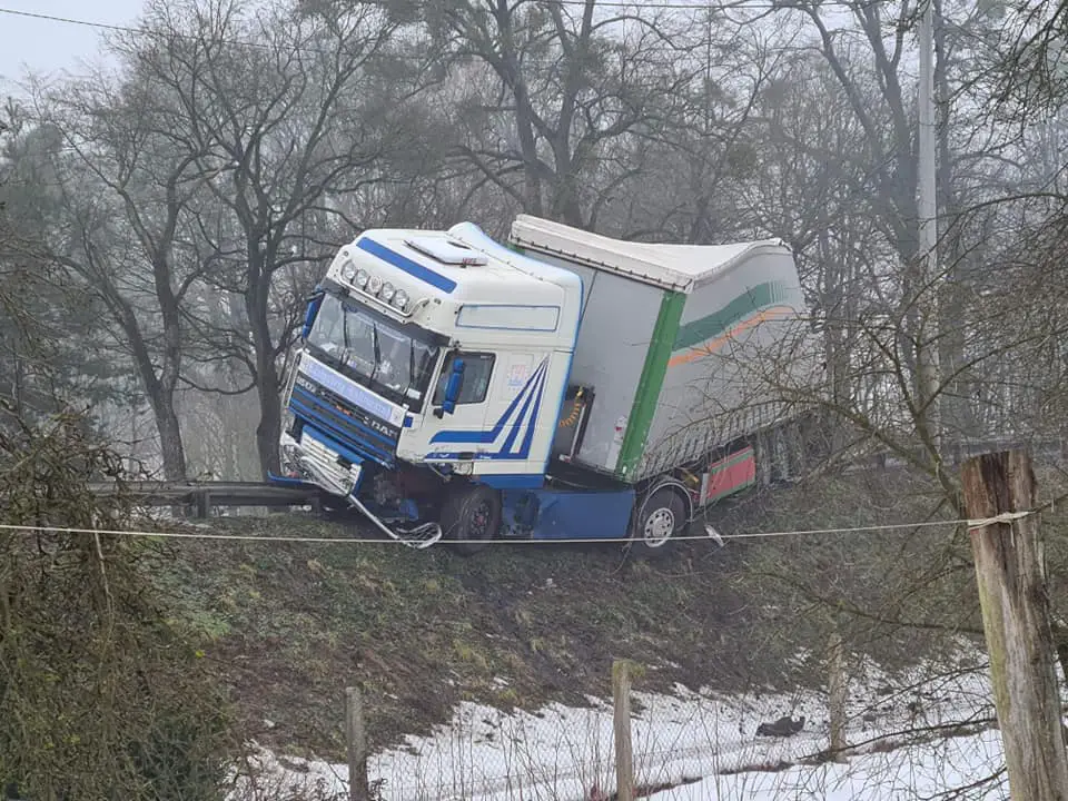 Niestety kierowca renault zginął na miejscu. Ciężarówka w wyniku uderzenia zjechała ze swojego pasa ruchu i uderzyła w bariery. Samochód ciężarowy zawisła nad skarpą. W miejscu zdarzenia możliwe są jeszcze utrudnienia.