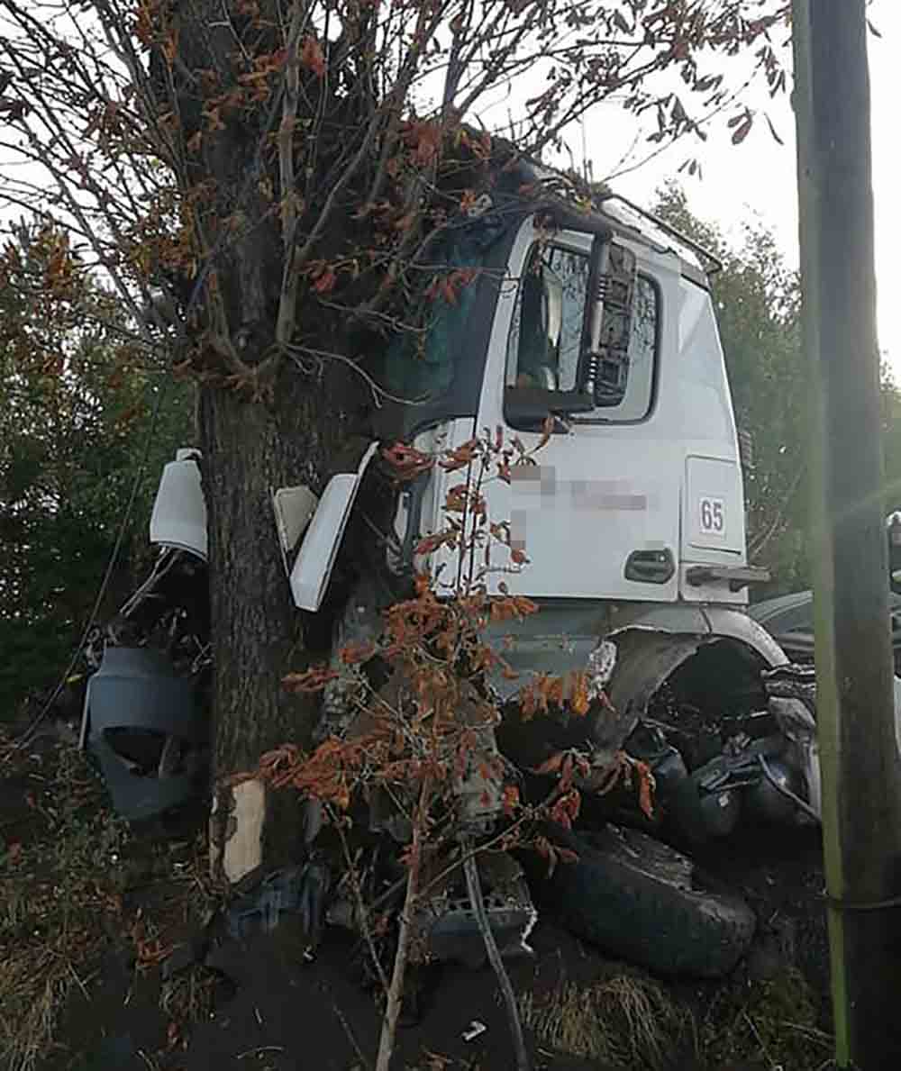 W wypadku brały udział dwa samochody osobowe oraz ciężarówka. Z jednej z osobówek zostało tylko podwozie. Ciężarówka jest mocno kabiną bita w pień drzewa.
