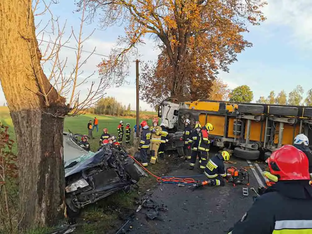 Wiadomo, że makabrycznym wypadku zginęła jedna osoba, a trzy zostały ciężko ranne. Na miejscu cały czas trwa akcja ratunkowa.