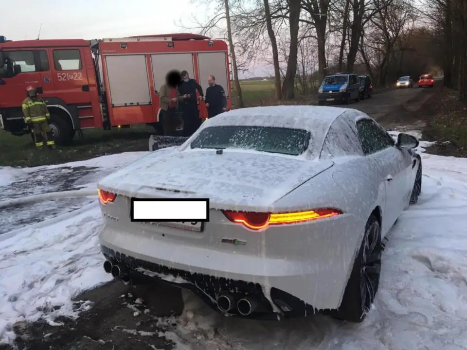 Do pożaru doszło dnia 11 kwietnia br., w miejscowości Ocieszyn. O godzinie 19:14 dyżurny SKKP PSP w Obornikach otrzymał zgłoszenie o pożarze samochodu osobowego marki Jaguar.