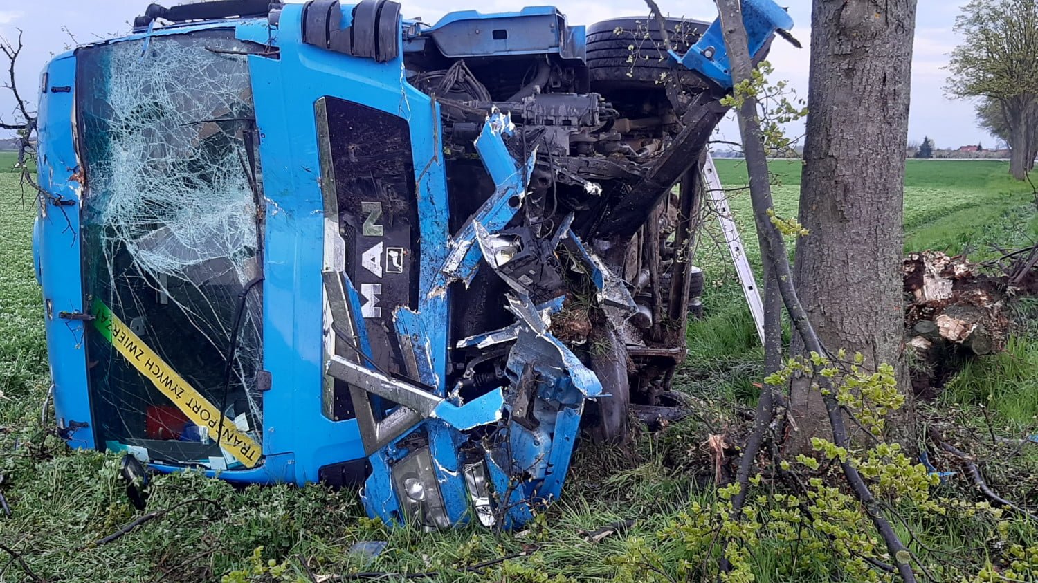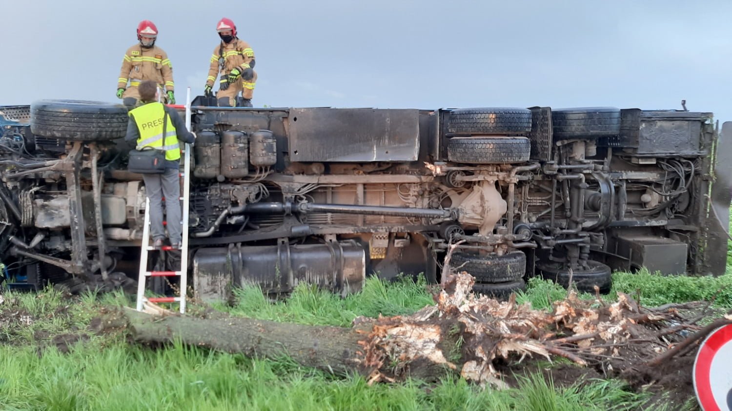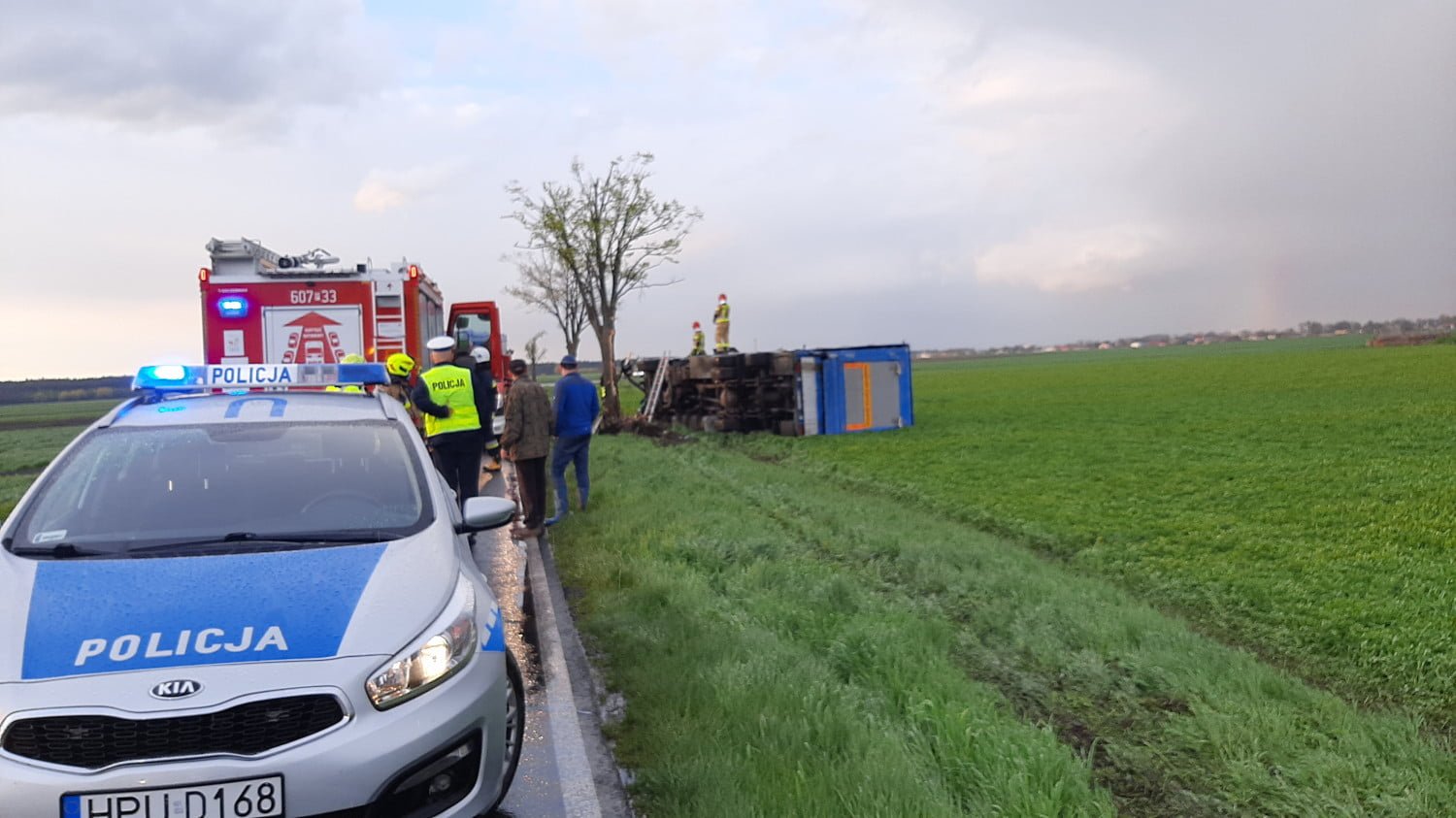 Do zdarzenia doszło dnia 06 maja br., około godziny 19:00 między miejscowościami Nochowo, a Wyrzeka. Doszło tam do wypadku z udziałem ciężarówki, która wypadła z drogi.