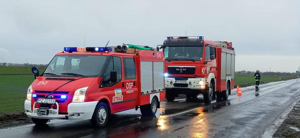 Do działań strażaków polegało zabezpieczenie miejsca zdarzenia, kierowaniu ruchem, zabezpieczeniu wycieku paliwa z samochodu ciężarowego.
