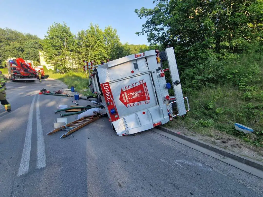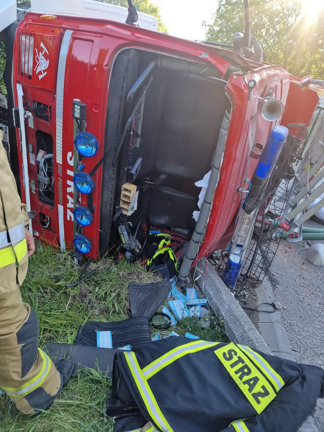 Jeden strażak został ranny po wypadku wozu strażackiego. Druhowie jechali do pożaru lasu