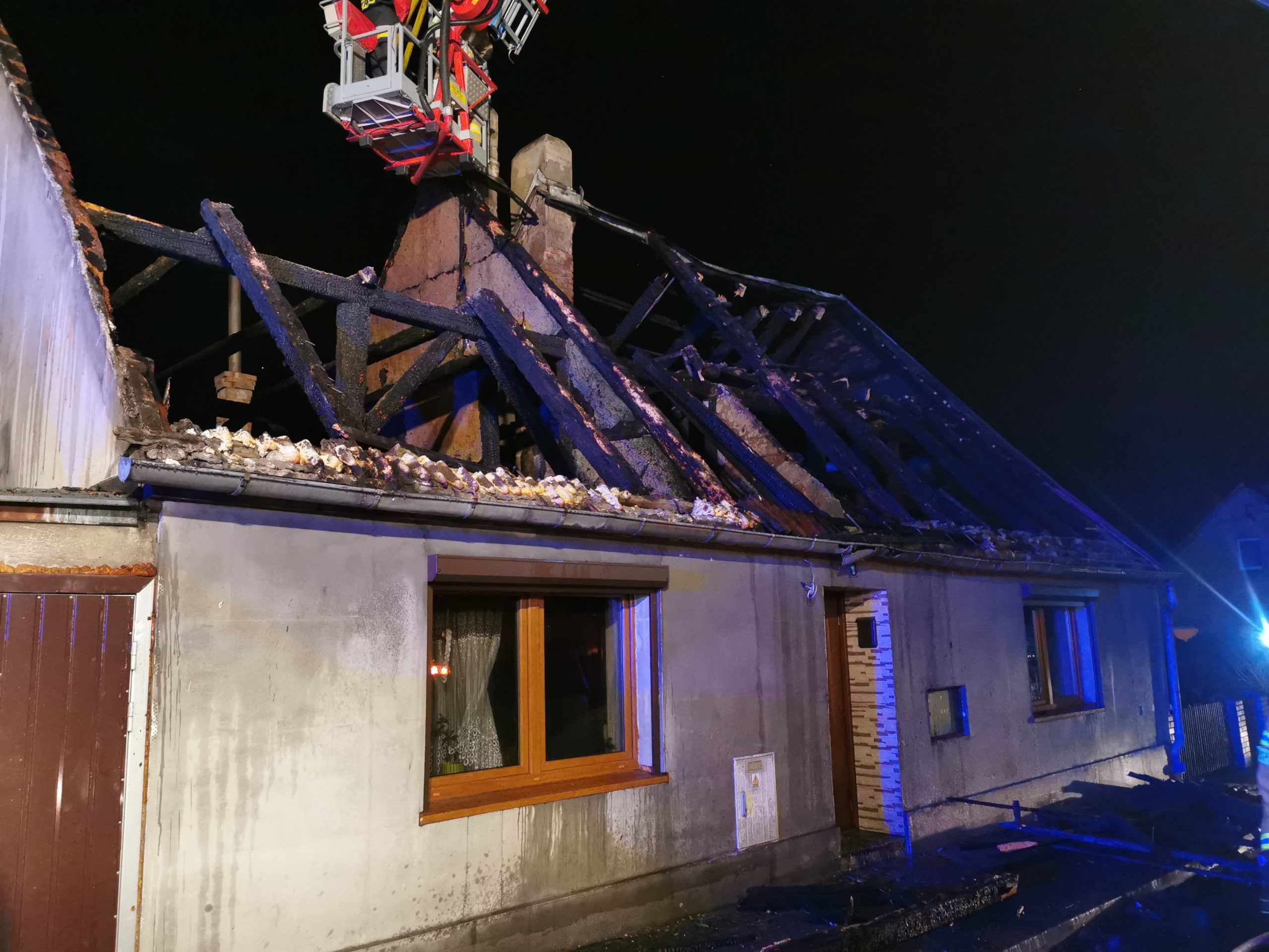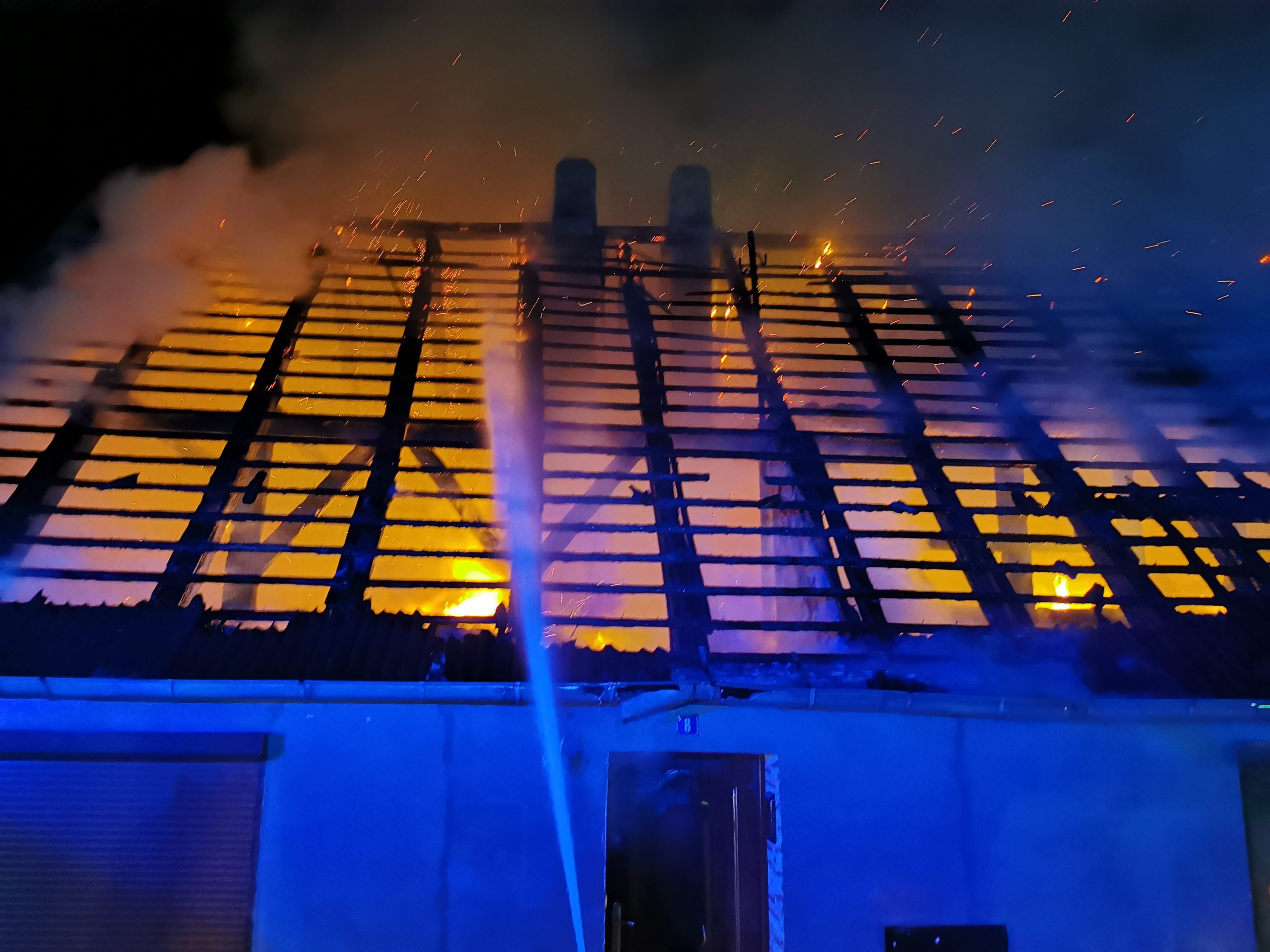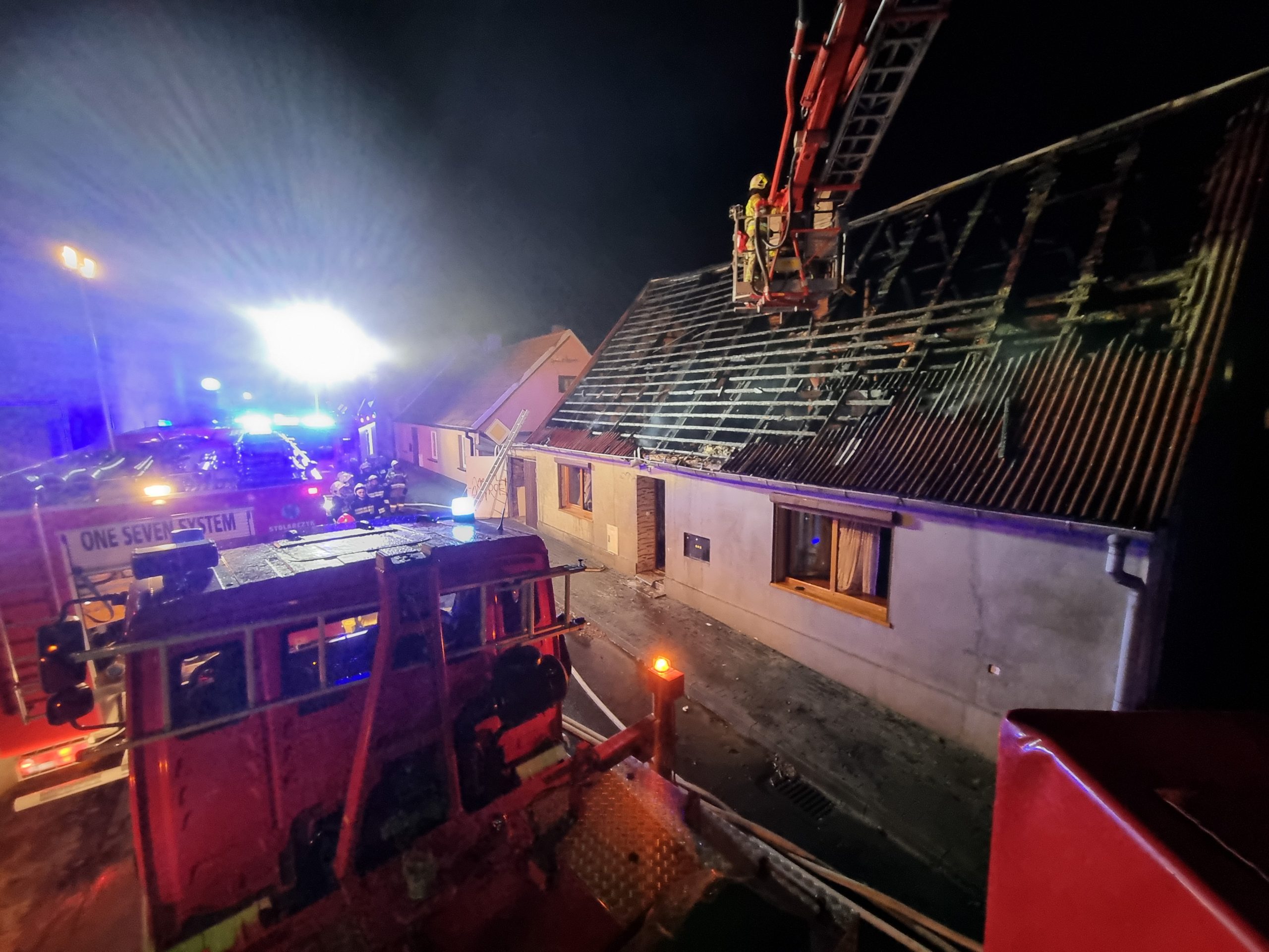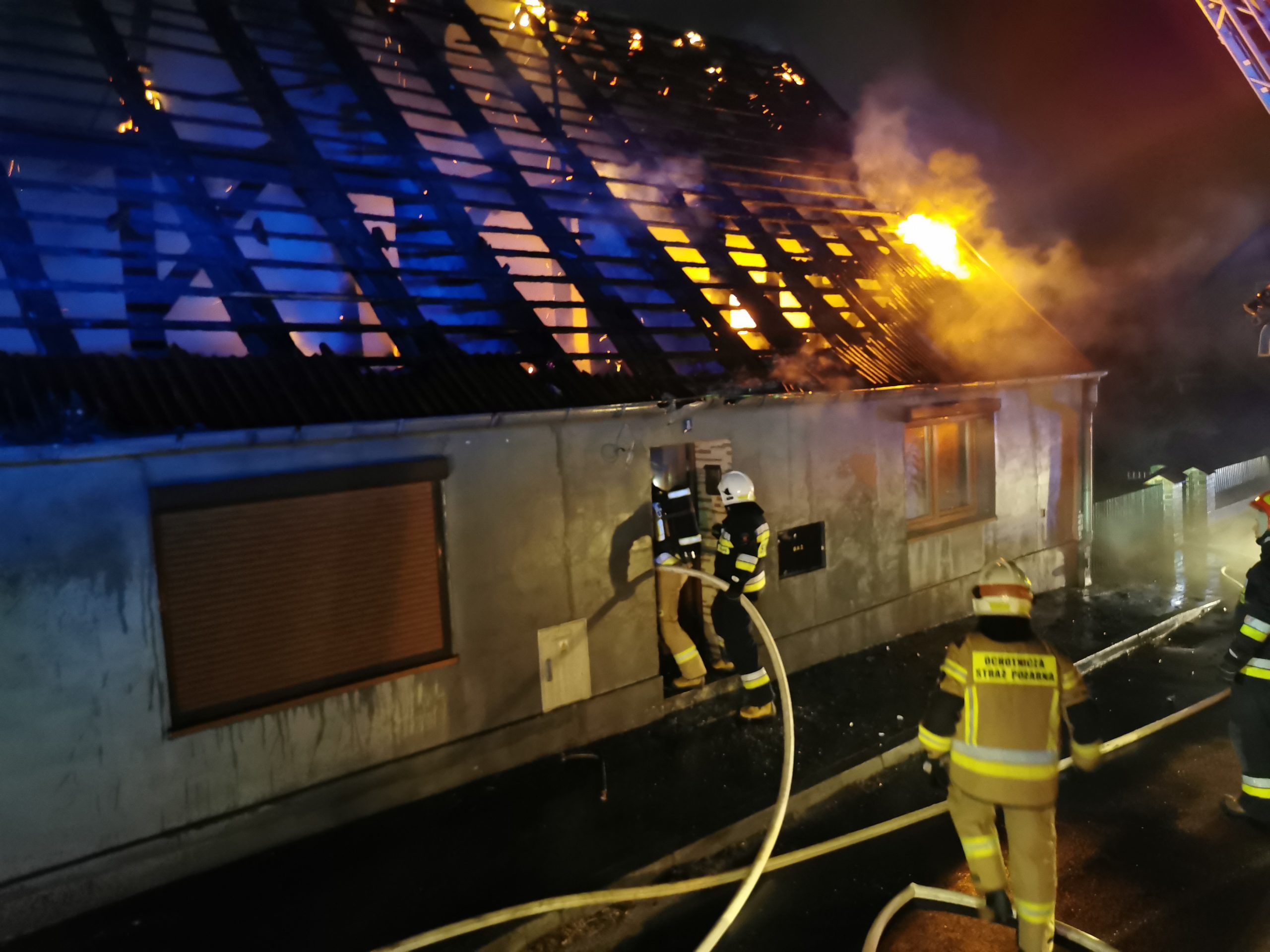 Niestety po przybyciu pierwszego zastępu Ochrony Przeciwpożarowej okazało się, że pożarem objęty jest dach budynku na całej powierzchni. Osoby obecne na miejscu zdarzenia przekazały informację Kierującemu Działaniami Ratowniczymi, że w budynku nie przebywają żadne osoby.