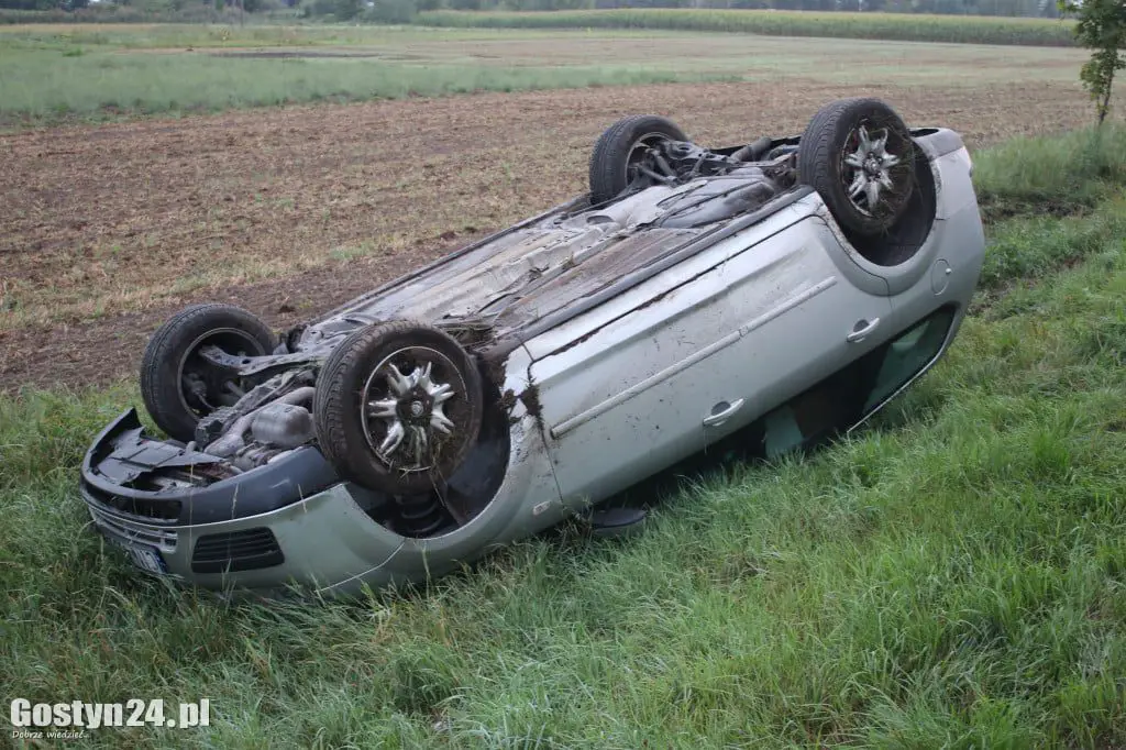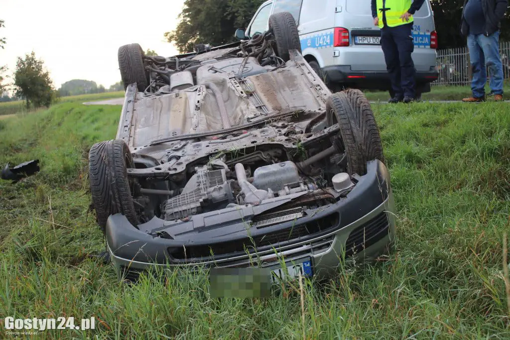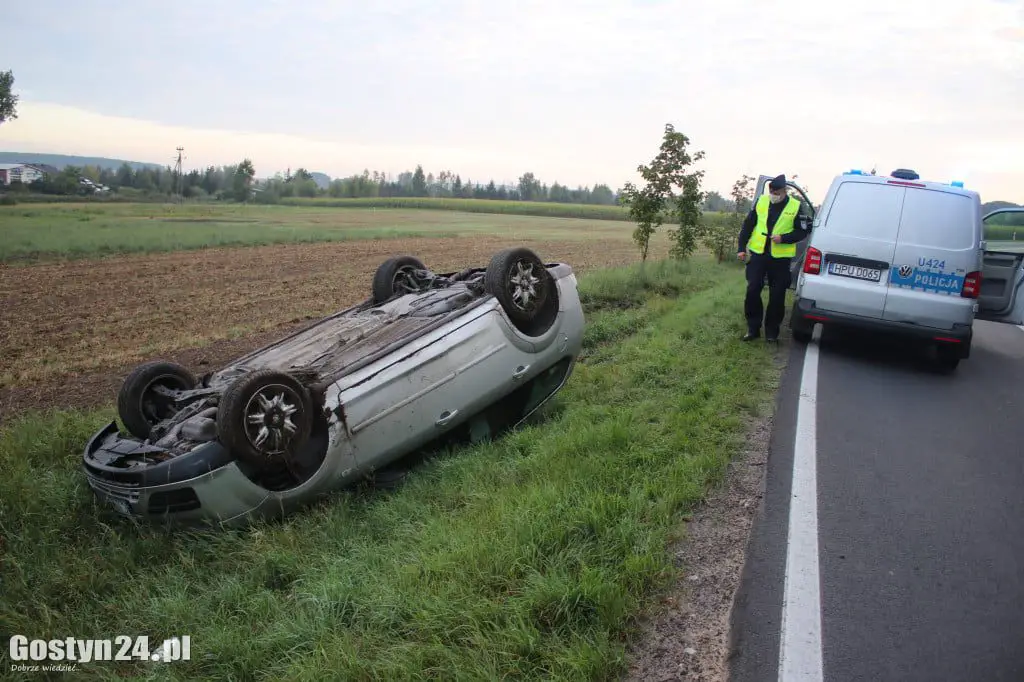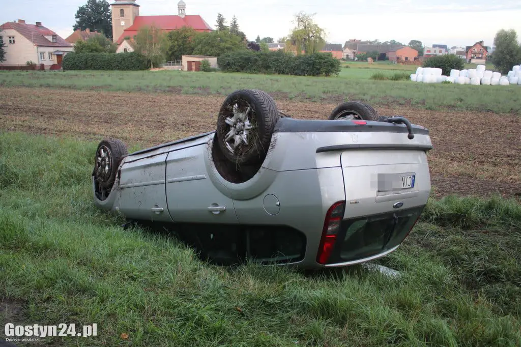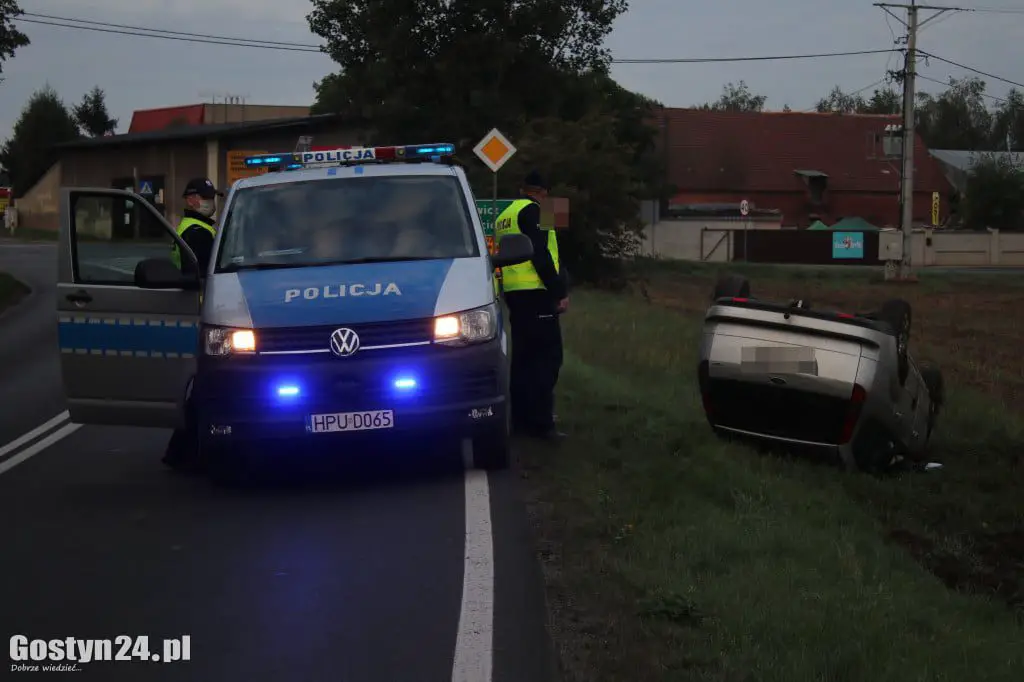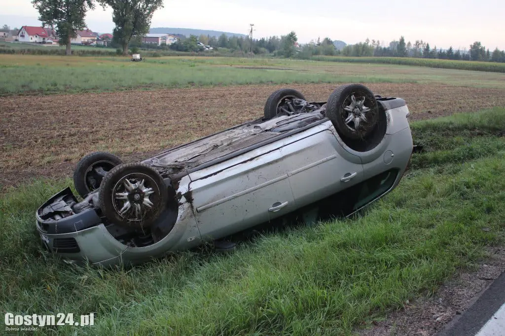 Wczesnym rankiem, jadąc z Inowrocławia do Miejskiej Górki, kierowca osobowego forda dachował w rowie na drodze wojewódzkiej 434. Razem z nim podróżował pasażer, który trafił do gostyńskiego szpitala. W aucie przewożone były także ptaki, z których jeden nawiał.