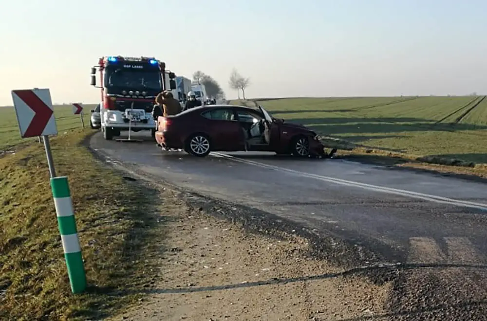 Pierwsze zdarzenie miało miejsce na drodze powiatowej pomiędzy miejscowością Laski a Nowa Wieś. Na łuku drogi 22–letnia mieszkanka Opatowa kierując lexusem doprowadziła do czołowego zderzenia z kierującą 52–letnią mieszkanką gminy Trzcinica, która jechała peugeotem. Obie kierujące były trzeźwe. Sprawczyni została ukarana mandatem i punktami karnymi.
