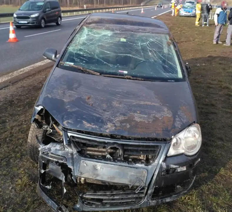 Trzecie zdarzenie miało miejsce na drodze S8, dokładnie na 88 km w kierunku Warszawy. Kierująca volkswagenem 21–letnia mieszkanka gminy Syców nie dostosowała prędkości do warunków na drodze i uderzyła w bariery ochronne. Po uderzenia samochód dachował. Kobieta była trzeźwa. Została ukarana mandatem i punktami karnymi.