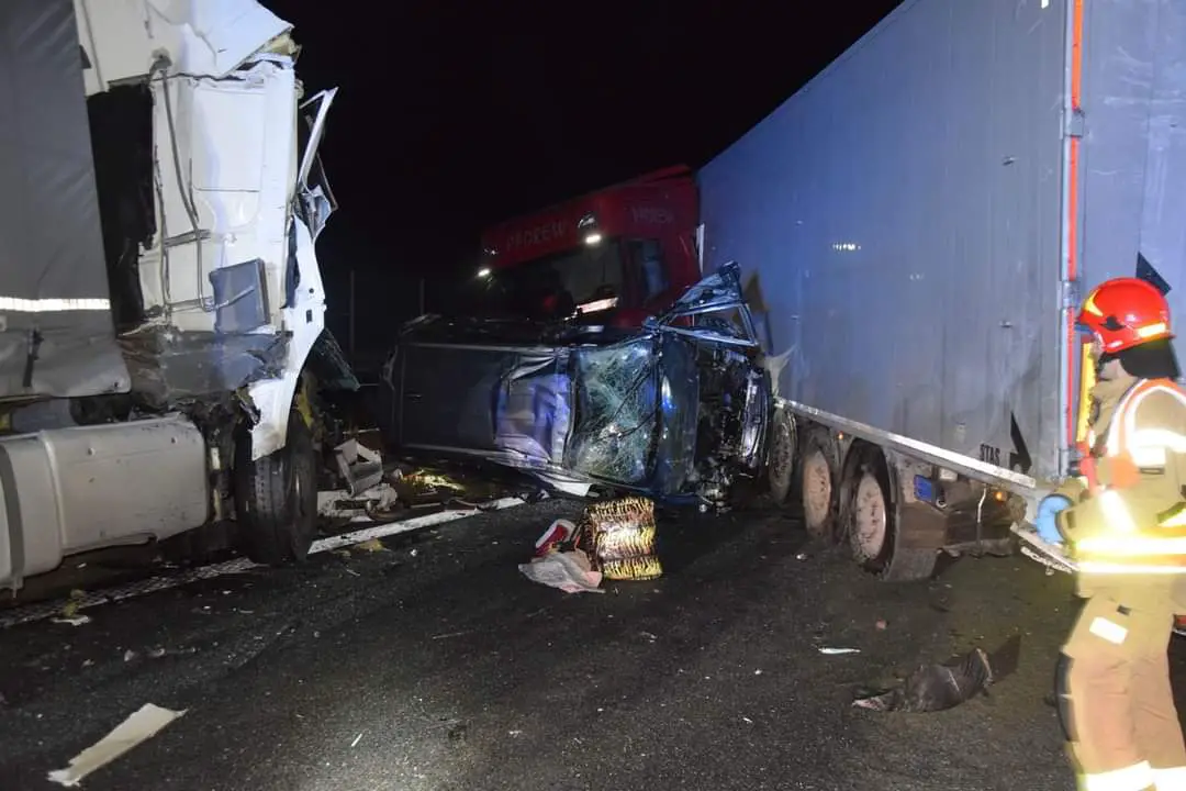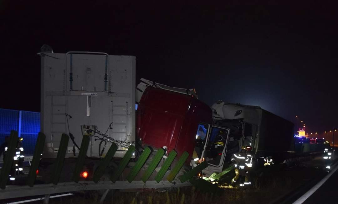 Po 1.00 w nocy w sobotę służby ratunkowe zostały zaalarmowane o wypadku na tarnowskim odcinku autostrady około kilometra za węzłem w Wierzchosławicach. Trzy samochody ciężarowe i jednak osobówka całkowicie zablokowały nitkę autostradową w kierunku Krakowa. Do tego czwarta ciężarówka chcąc uniknąć wjechania w rozbite pojazdy, zjechała na lewą stronę, przebiła bariery oddzielające pasy ruchu i zatrzymała się w poprzek nitki autostradowej w kierunku Rzeszowa, skutecznie blokując przejazd na wschód.