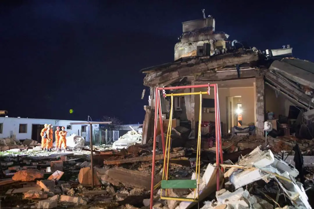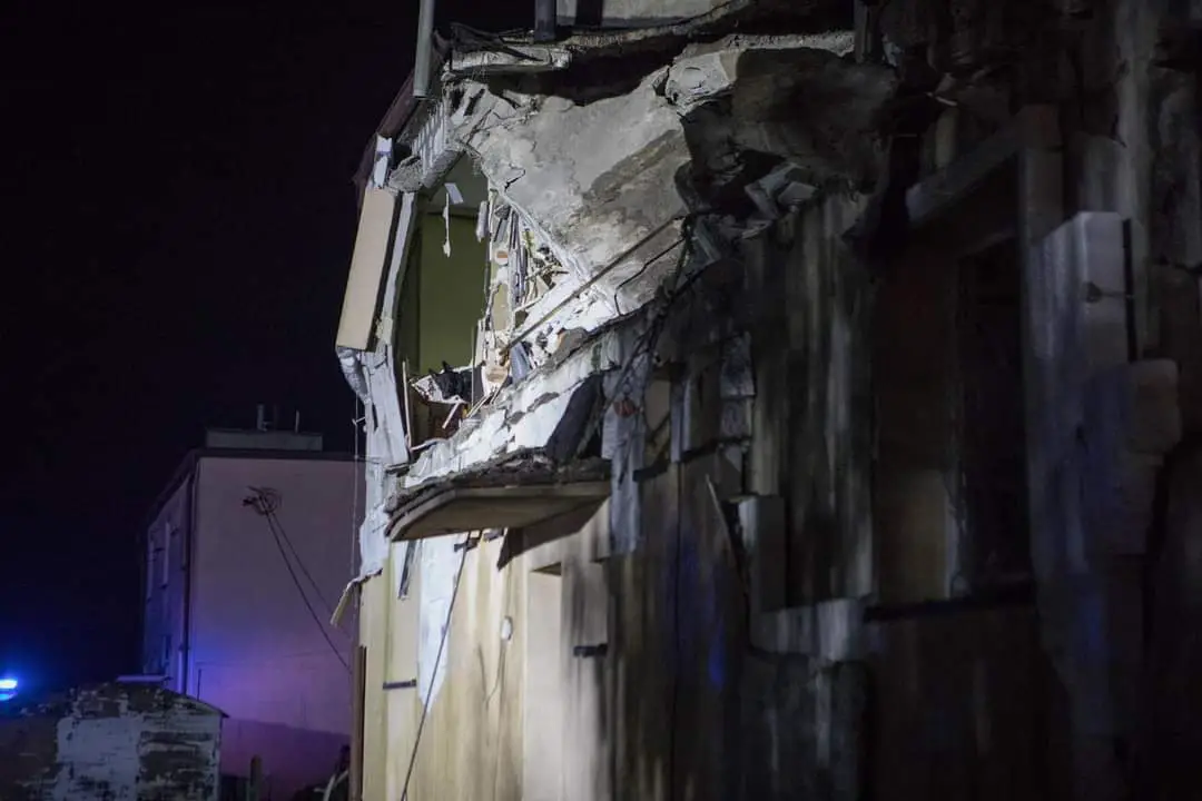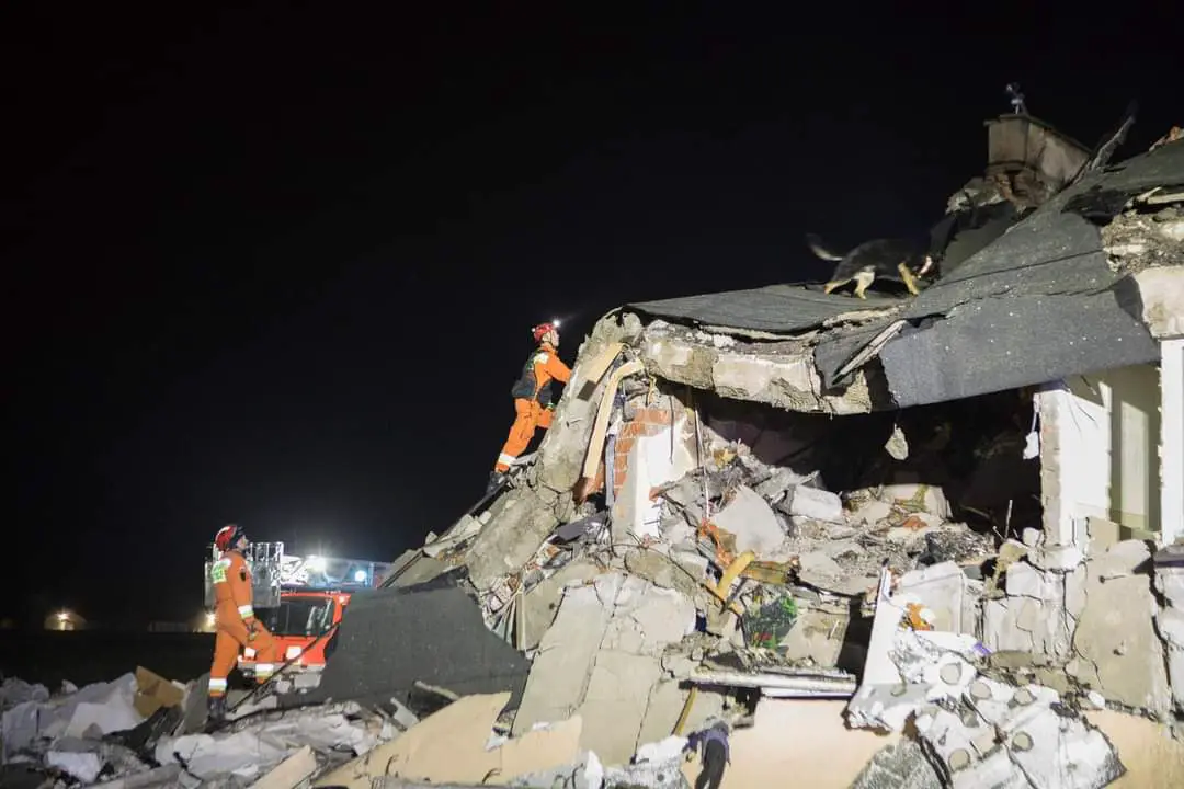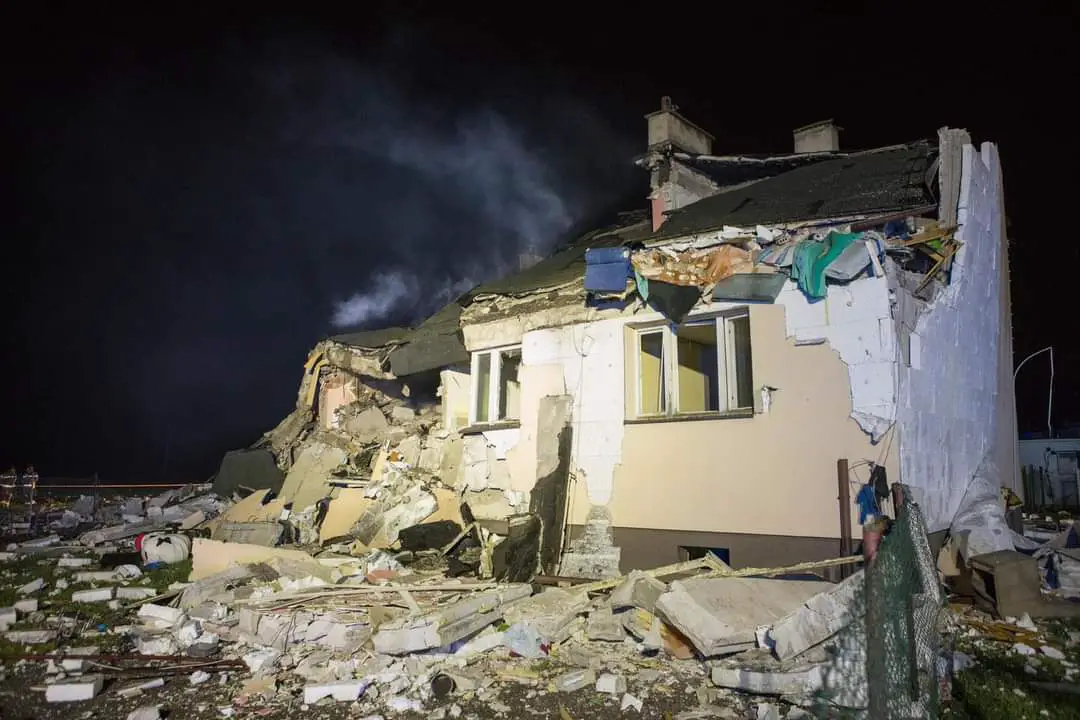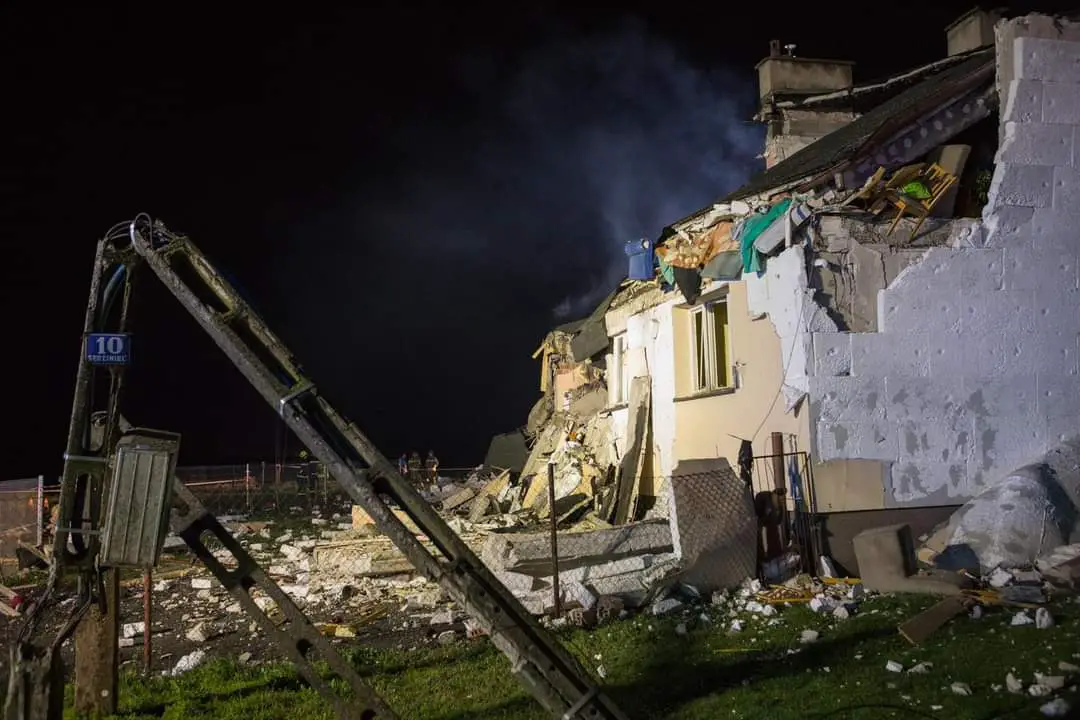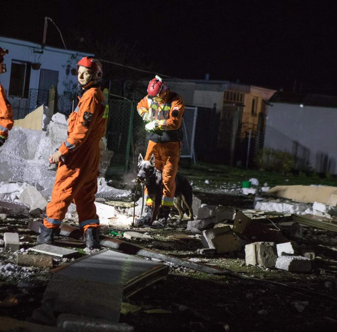 Po dotarciu na miejsce zdarzenia pierwszych zastępów potwierdzono znaczne zniszczenia budynku mieszkalnego, w którym w momencie wybuchu przebywało 10 osób. Wszystkie osoby znajdowały się poza obiektem, na gruzowisku pozostawał mężczyzna, który częściowo przygnieciony był elementami konstrukcyjnymi zburzonego budynku. W wyniku zdarzenia doszło do również do pożaru.