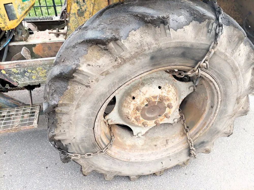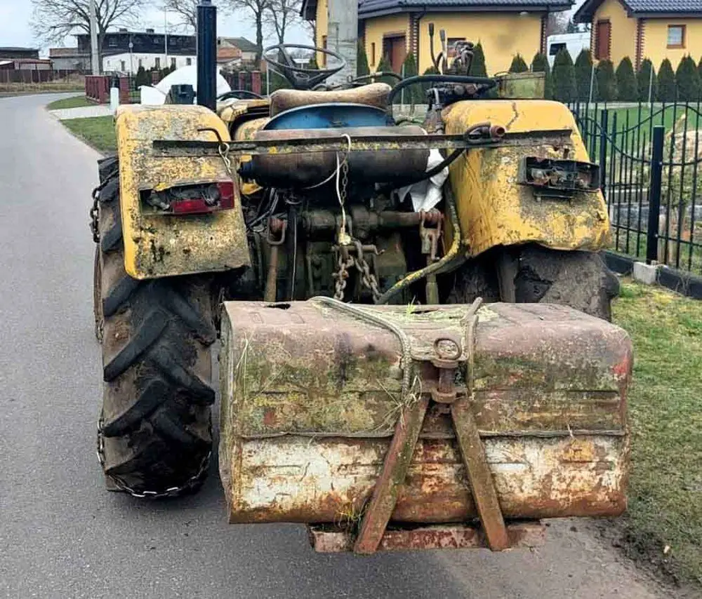 Traktor nie miła oświetlenia. Na tylnym podnośniku miał zamontowany obciążnik, a na kole przymocowane łańcuchy. Dodatkowo kierowca na podnośniku przednim przewoził niezabezpieczone worki.