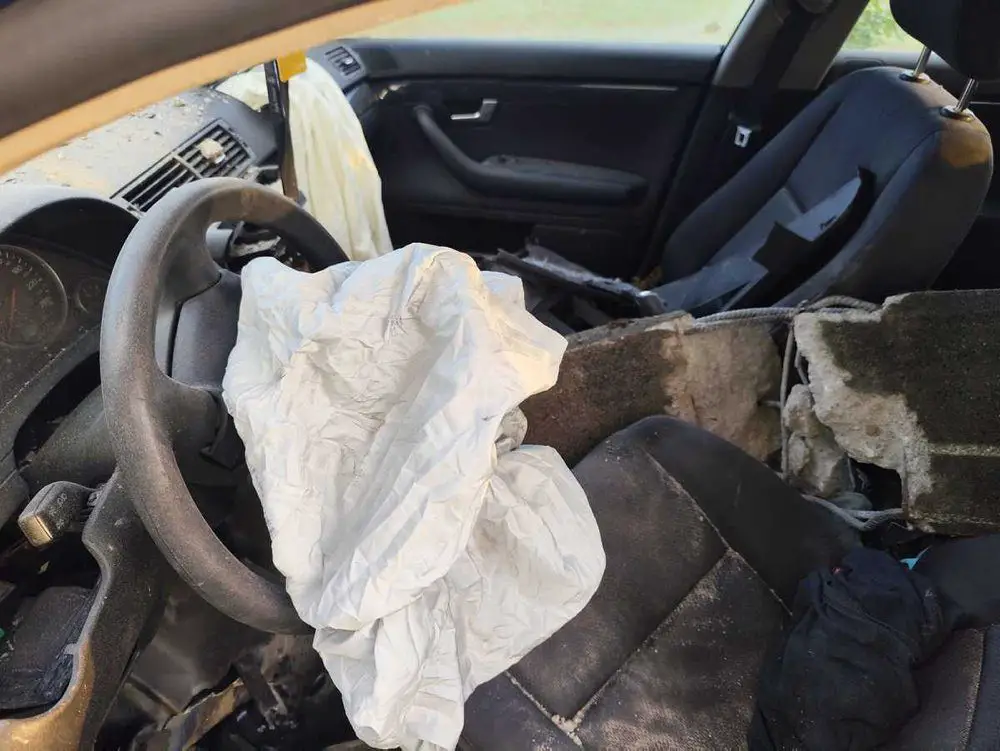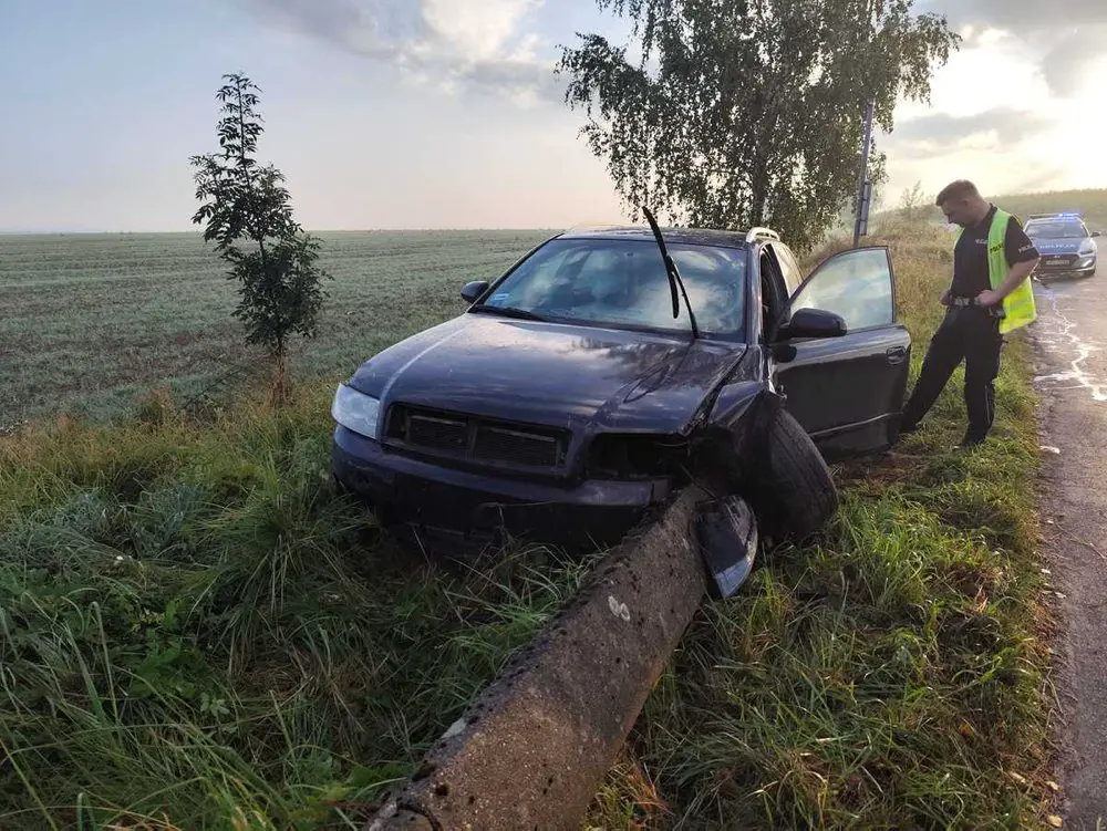 Nagle wypadł z drogi uderzając w betonowa barierę ochronną. Siła uderzenia była tak duża, że betonowa bariera wbił się do środka audi. Cudem minęła kierującego. Tylko dlatego 23-latek przeżył wypadek.
