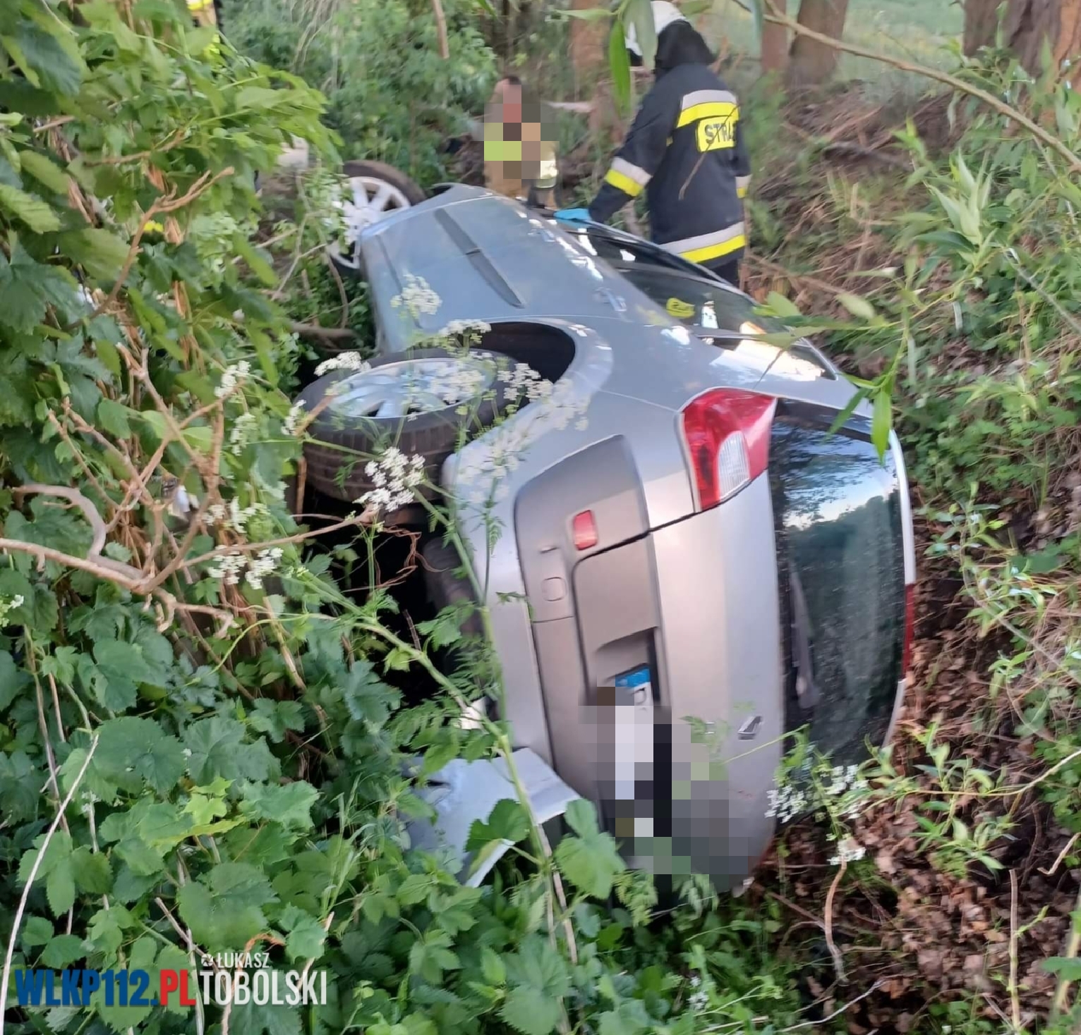 Po dojeździe na miejsce pierwszych służb zastano samochód osobowy, który dachował i wypadł z drogi do przydrożnego rowu. Kierujący samochodem jeszcze przed przybyciem służb o własnych siłach wyszedł z pojazdy.