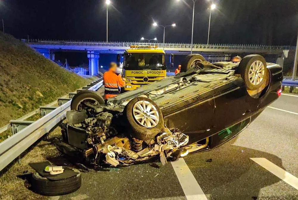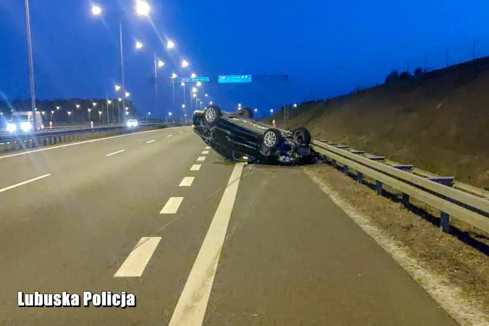 Niemal 3,4 promila alkoholu wydmuchał 29-latek, który na trasie S3 uderzył w busa i dachował. 29-letni kierujący volkswagenem wkrótce stanie przed sądem.