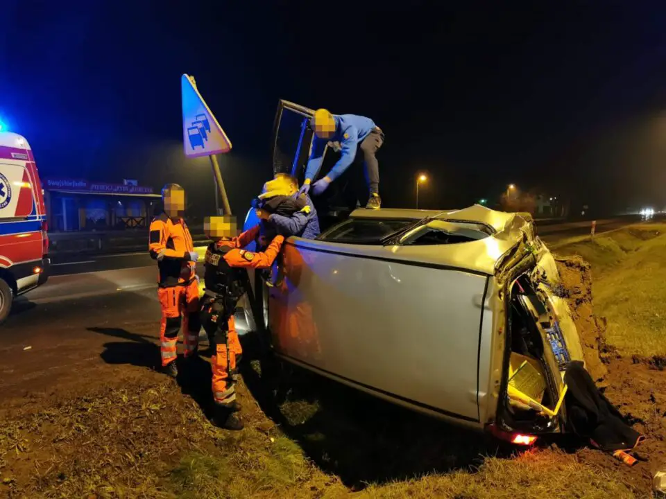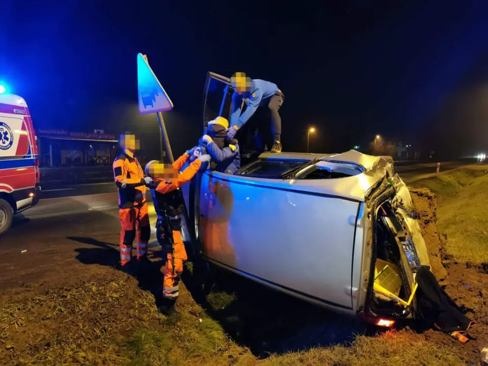 Jak się okazało kompletnie pijany kierowca wjechał w samochód, w którym podróżowała rodzina z dziećmi. Auto po zderzeniu koziołkowało i wpadło do rowu. Na pomoc natychmiast ruszył strażak ochotnik Krzysztof Smugała.