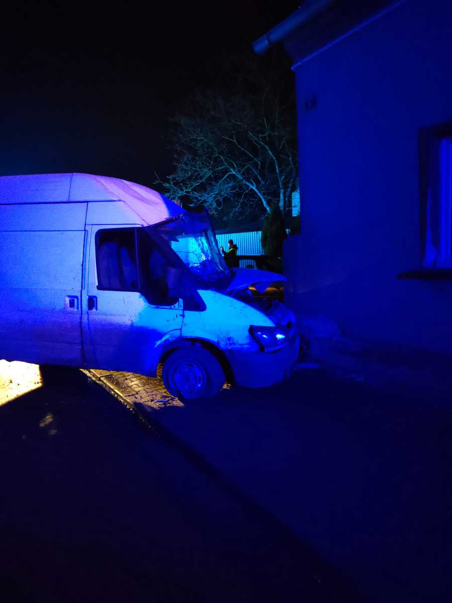 21.12.2022 r. ok.godz. 17:30 dyżurny wolsztyńskiej jednostki policji odebrał informację o zdarzeniu drogowym, do którego doszło na ul. Głównej w Żodyniu. Z przekazanej informacji wynikało, że kierujący Fordem Transitem mężczyzna stracił panowanie nad pojazdem i uderzył w budynek mieszkalny.
