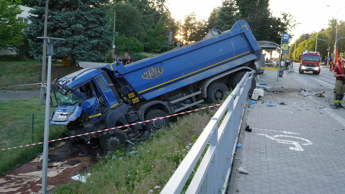 W poniedziałek (27.05.2024 r.) olsztyńscy policjanci pracowali na miejscu zdarzenia drogowego, do którego doszło w Olsztynie przy ul. Bałtyckiej w okolicy wiaduktu. Ze wstępnych ustaleń funkcjonariuszy wynika, że 42-letni prowadzący ciężarówkę stracił panowanie nad swoim pojazdem i staranował 4 samochody osobowe, które stały w obrębie pobliskiego skrzyżowania. Następnie ciężarówka uderzyła w tył autobusu komunikacji miejskiej i zjechała z drogi na pobocze.