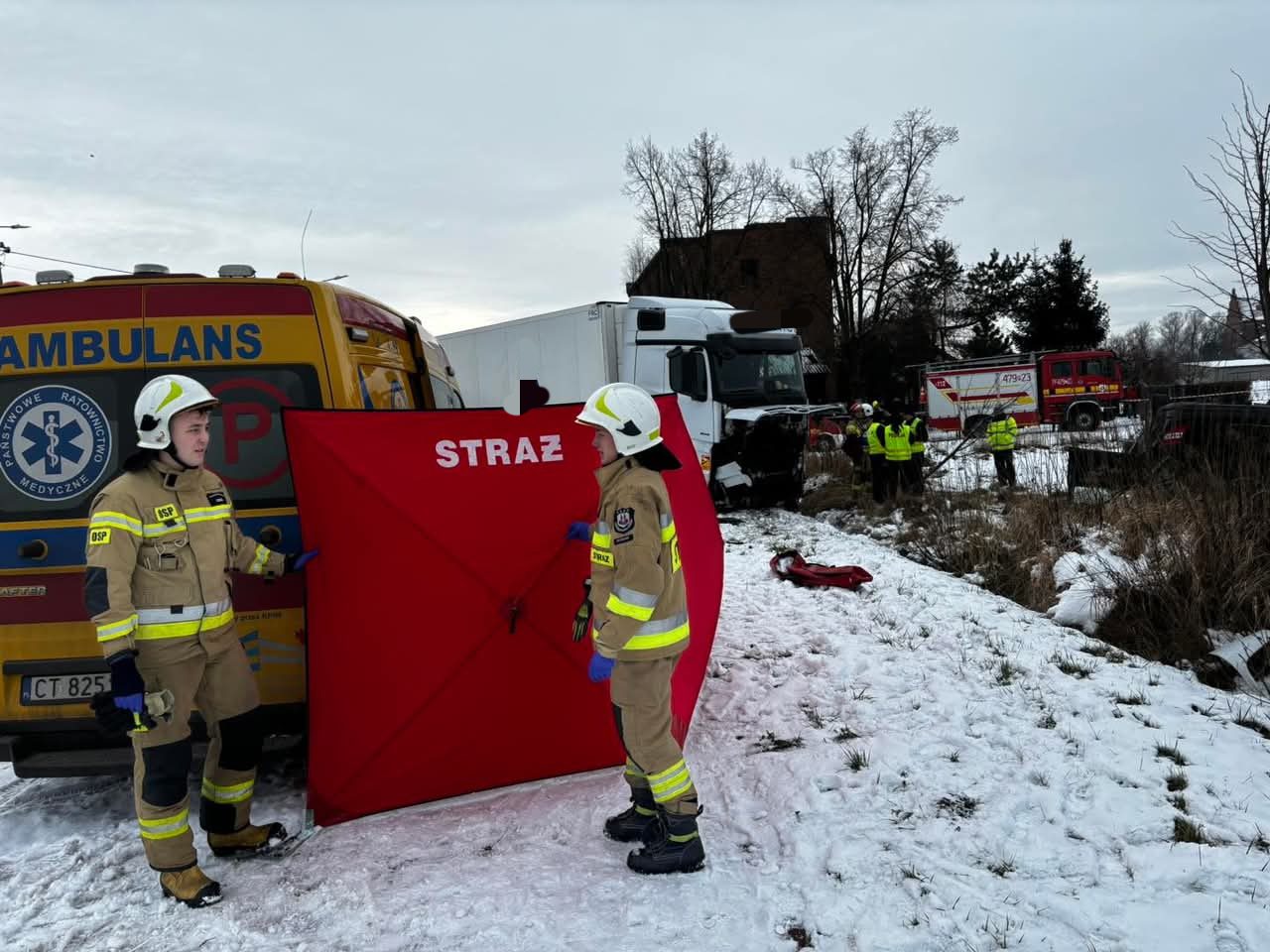 Wszystko wydarzyło się we wtorek 14 stycznia po godzinie 13:00. Na miejsce wypadku natychmiast zadysponowano strażaków zawodowych z Jednostki Ratowniczo-Gaśniczej z Koła, ochotników z OSP Kłodawa, OSP Przedecz, Zespoły Ratownictwa Medycznego, policję oraz Śmigłowiec Lotniczego Pogotowia Ratunkowego.