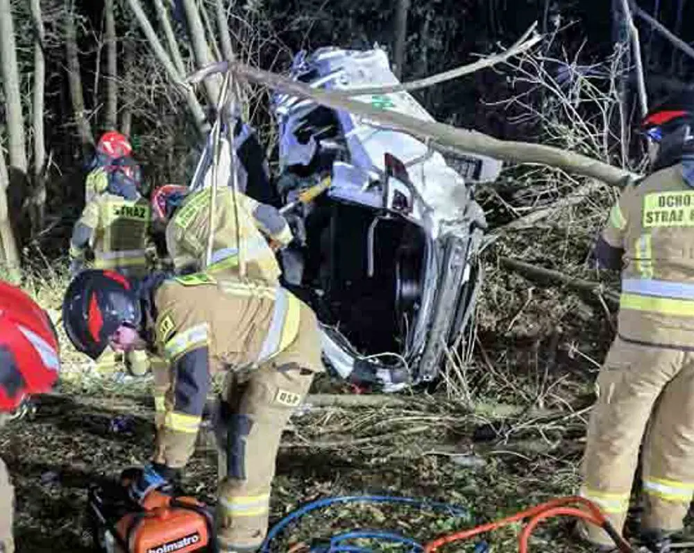 Pasażerowie wyszli z samochodu. Niestety kierowca został w rozbitej toyocie. Wyciągnęli go strażacy rozcinając karoserię sprzętem hydraulicznym. Niestety kierujący zginął na miejscu wypadku. Ranni pasażerowie zostali karetkami zabrani do szpitala.