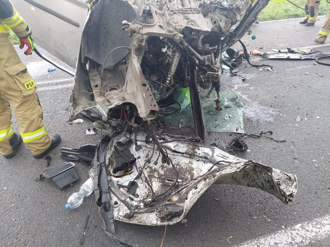 Działania SP polegały na zabezpieczeniu miejsca zdarzenia, wykonaniu dostępu do osoby uwiezionej za pomocą sprzętu hydraulicznego, wydobyciu mężczyzny z pojazdu, wyznaczeniu i zabezpieczeniu lądowiska dla śmigłowca LPR, przekazaniu osoby poszkodowanej pod opieką ratowników, rozłączeniu akumulatora, pomocy Policji w kierowaniu ruchem drogowym, sorpcji płynów eksploatacyjnych oraz posprzątaniu drogi z pozostałości po wypadku.