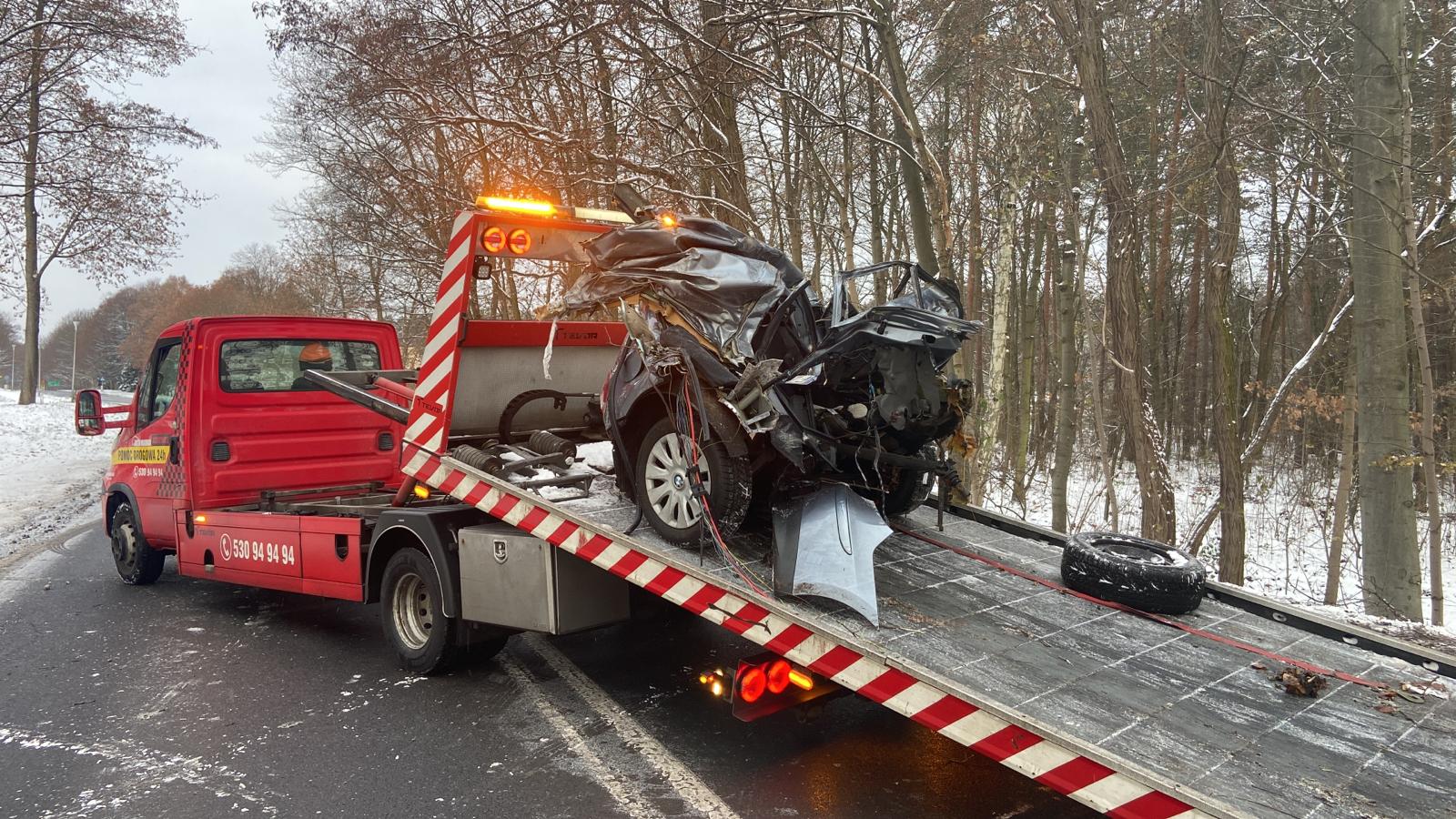 Do śmiertelnego wypadku doszło we wtorek, 13 grudnia, na ulicy Łużyckiej w kierunku Wilkanowa (woj.lubuskie). BMW uderzyło w drzewo. Samochód rozpadł się na dwa kawałki. Dwaj młodzi mężczyźni zginęli na miejscu.
