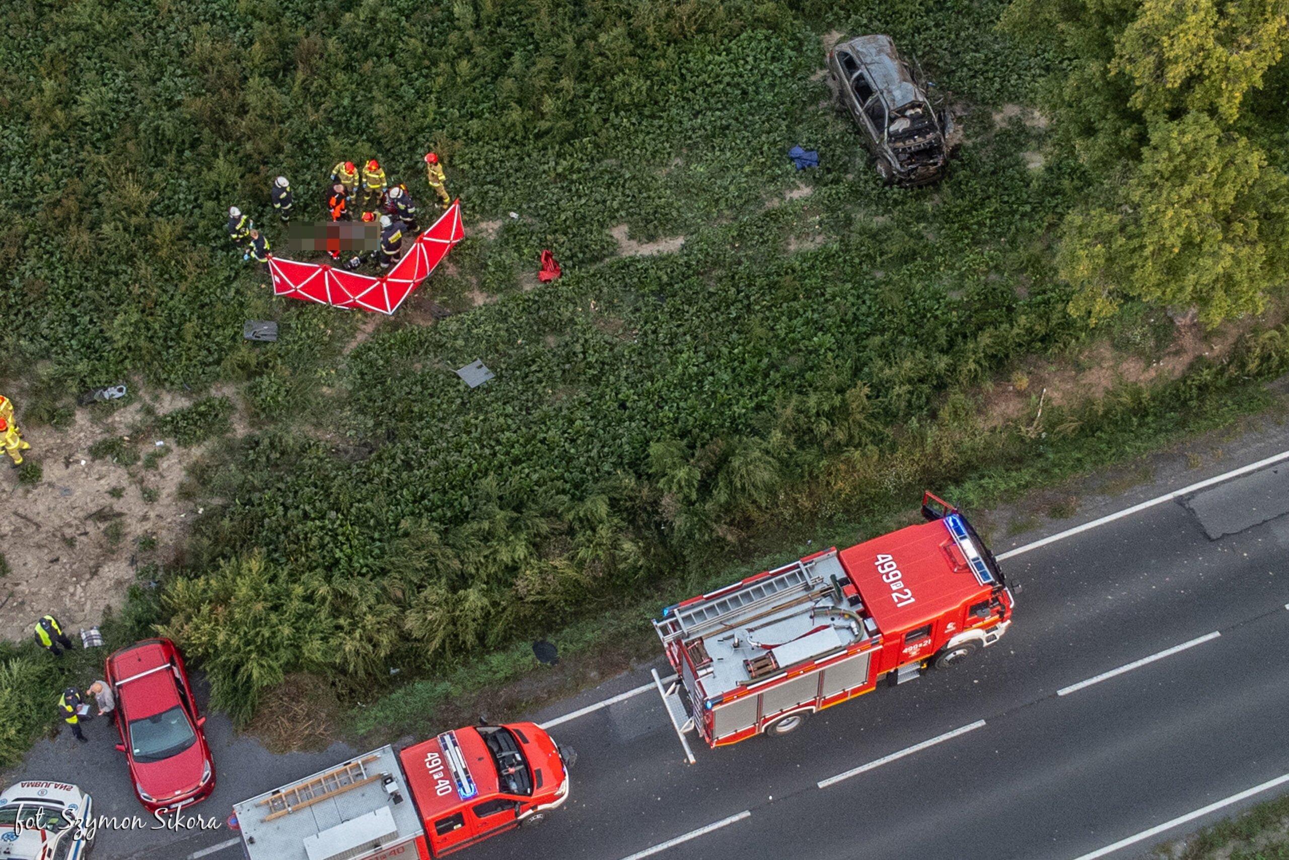 Strażacy zabezpieczyli miejsce zdarzenia, następnie przystąpili do wykonywania czynności zmierzających do przywrócenia funkcji życiowych. Na miejsce zdarzenia dotarł zespół ratownictwa medycznego. Ratownik Medyczny na podstawie przeprowadzonego badania podjął decyzję o odstąpieniu od dalszych czynności medycznych. Strażacy wraz z policjantami przeszukali dokładnie teren zdarzenia pod kątem dodatkowych osób, które mogłyby brać udział w zdarzeniu – dodaje Patryas