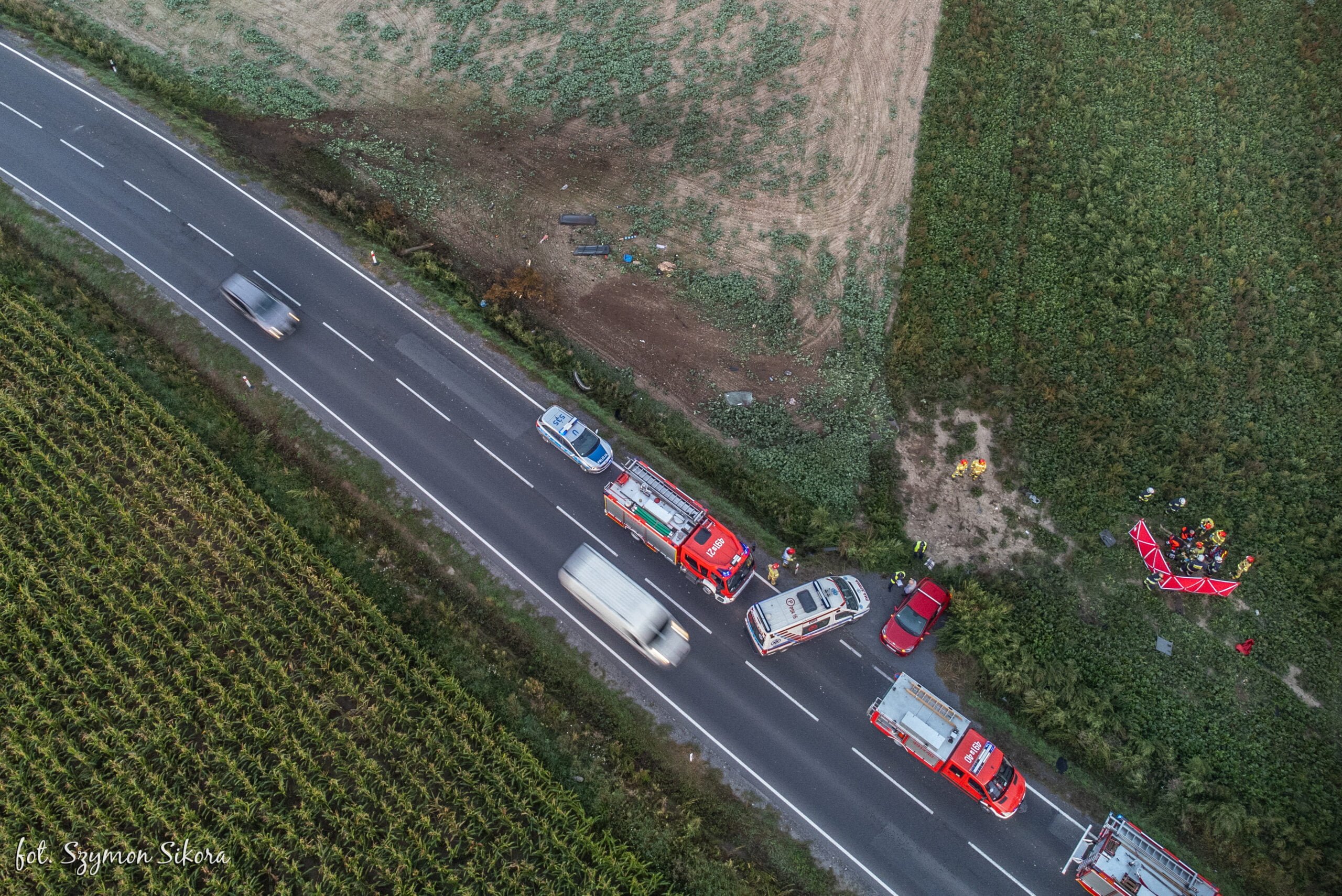 Ruch na drodze krajowej odbywał się wahadłowo. Do czasu zakończenia czynności dochodzeniowych policji pod nadzorem prokuratora strażacy zabezpieczali miejsce zdarzenia. Na tym działania zakończono i zastępy wróciły do miejsca stacjonowania.