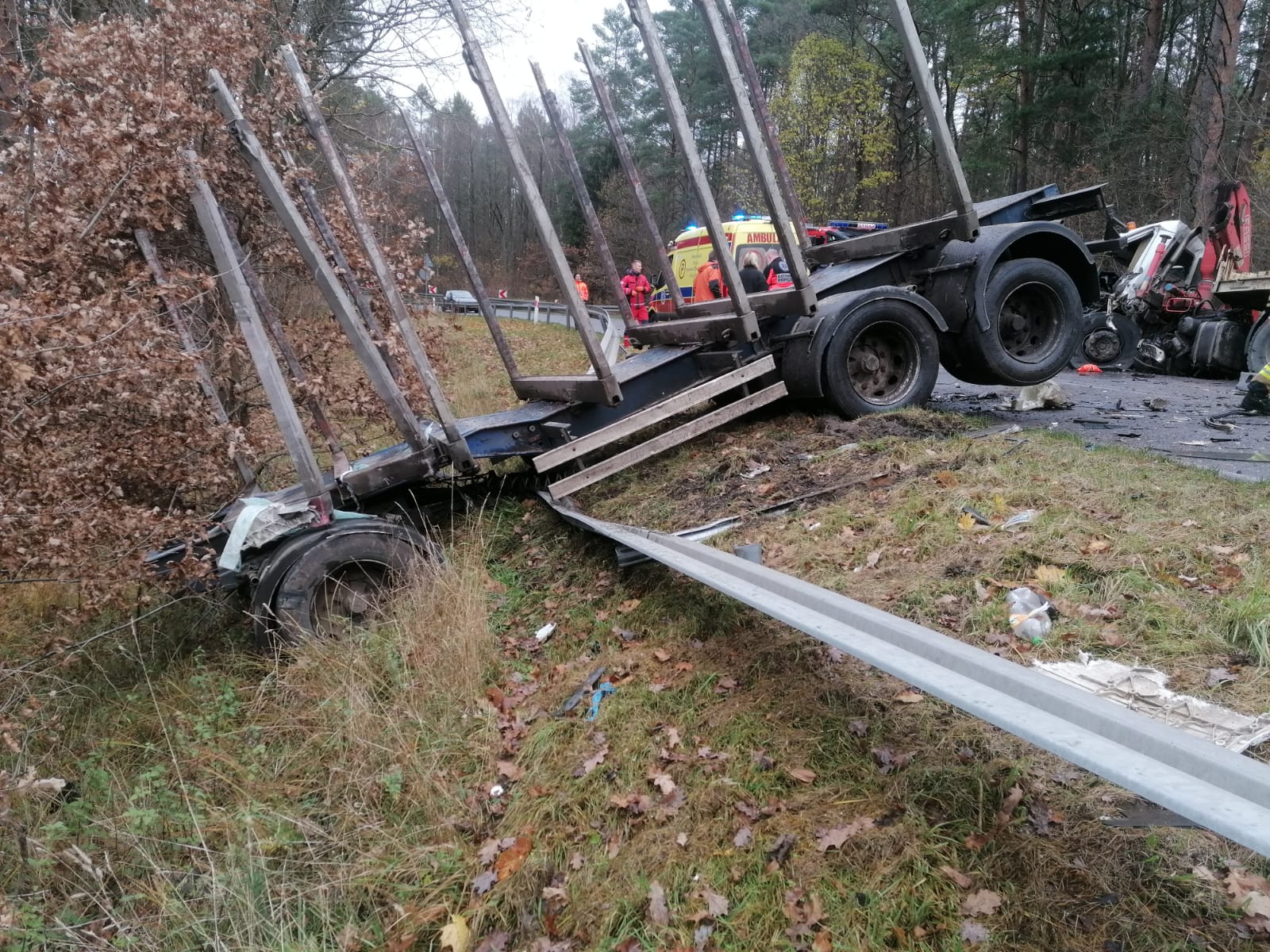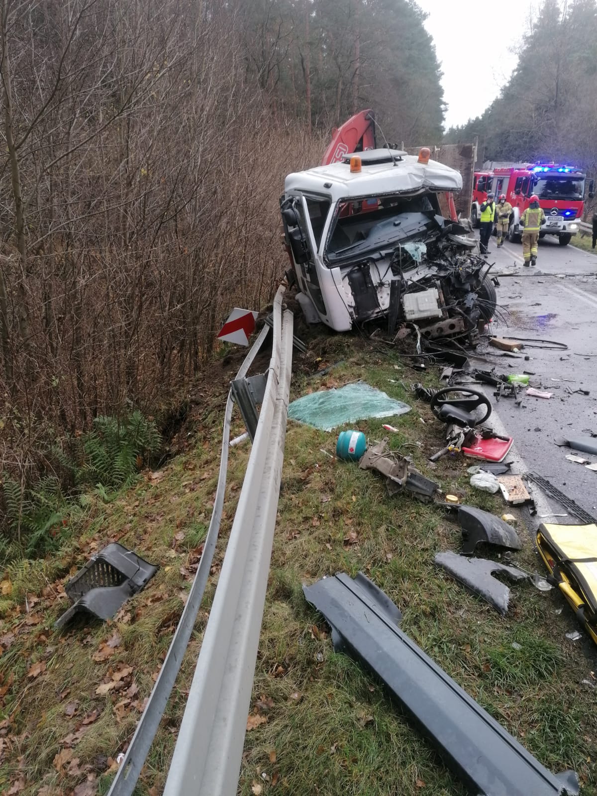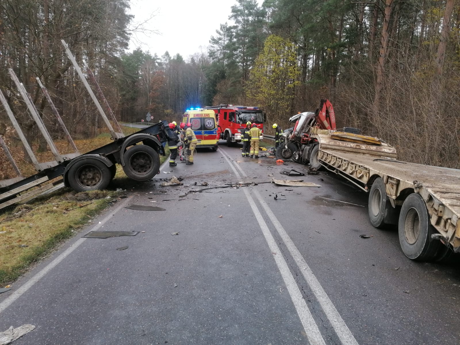 Jeden z kierowców został zakleszczony w zmiażdżonej kabinie. W akcji Śmigłowiec Lotniczego Pogotowia Ratunkowego.