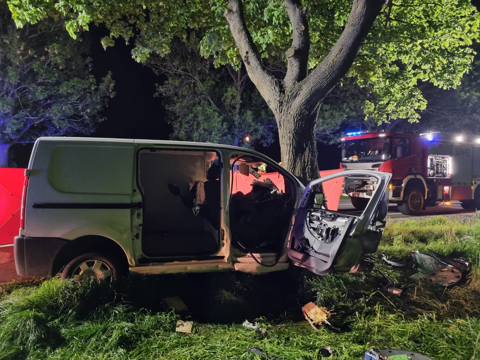 Po dojeździe na miejsce pierwszych służb, okazało się, że samochód dostawczy z ogromną siłą uderzyło w drzewo. Kierujący mężczyzna po uderzeniu został uwięziony w rozbitym pojeździe.