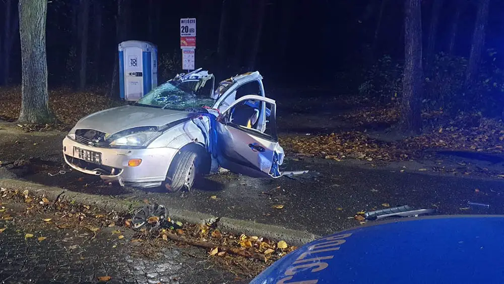 Do potwornego wypadku doszło w Jastrzębiej Górze (woj. pomorskie). Ford z potężną siłą uderzył w drzewo i rozpadł się na dwie części. Zginęły dwie osoby, dwie zostały ciężko ranne.