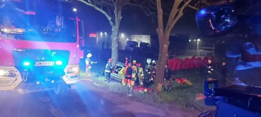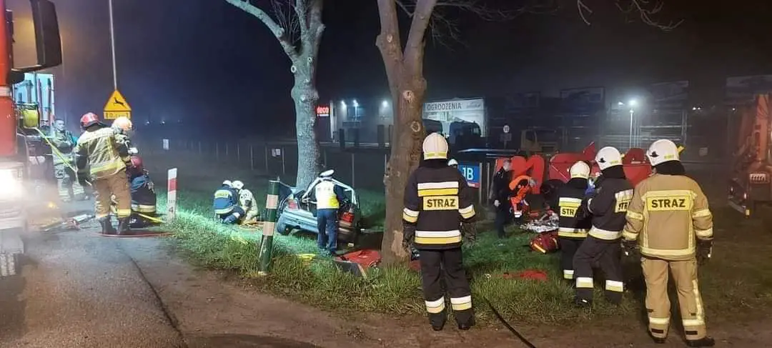 Auto roztrzaskało się o drzewo. Jedna osoba zginęła na miejscu, druga w stanie krytycznym trafiła do szpitala.