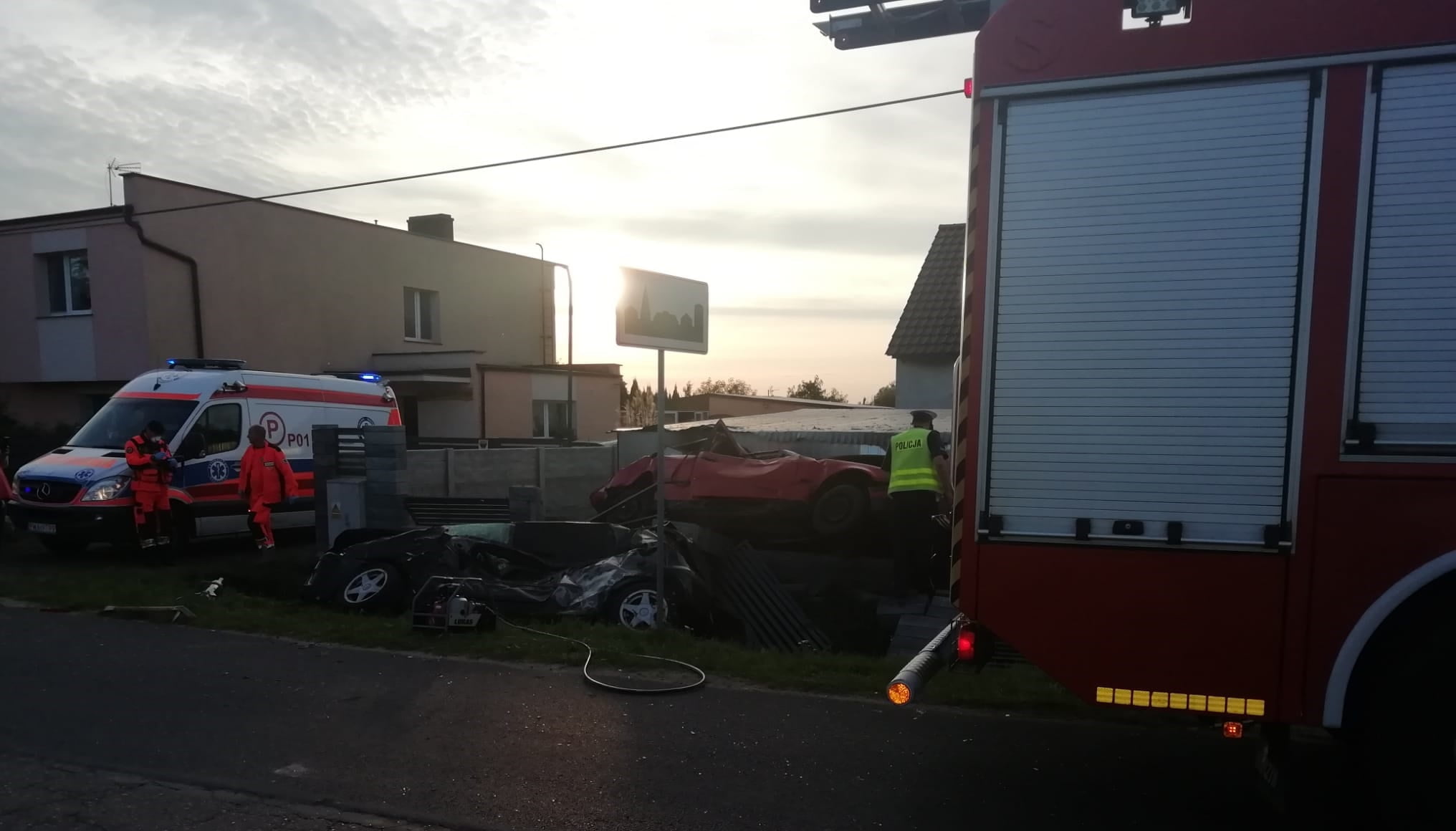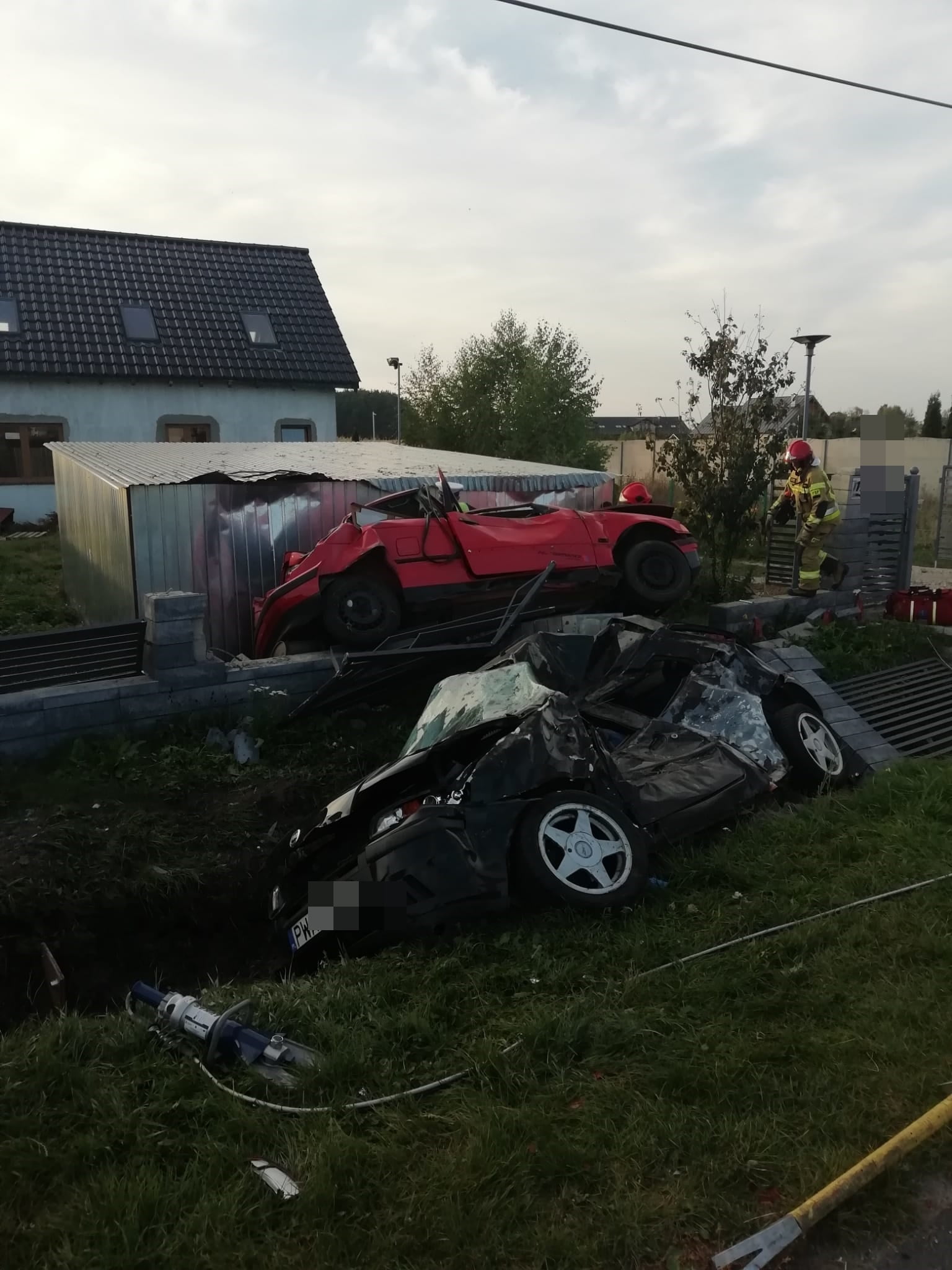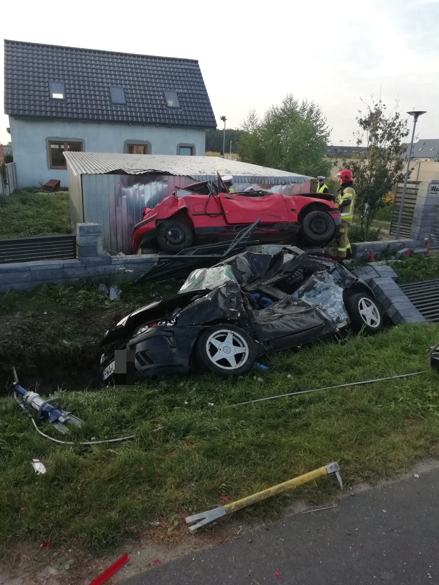 Koszmarny wypadek. Siła uderzenia była tak duża, że pojazdy wypadły z drogi i wpadły na posesję. Kierowca BMW zginął na miejscu.