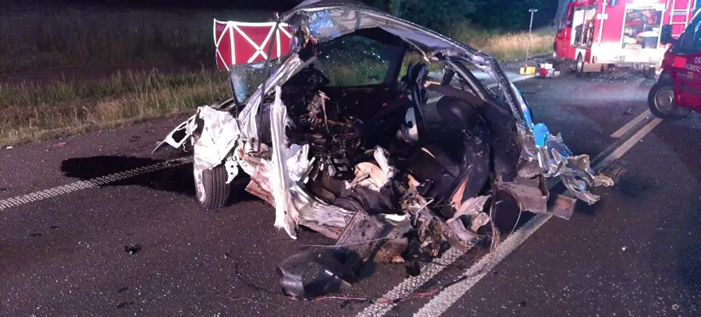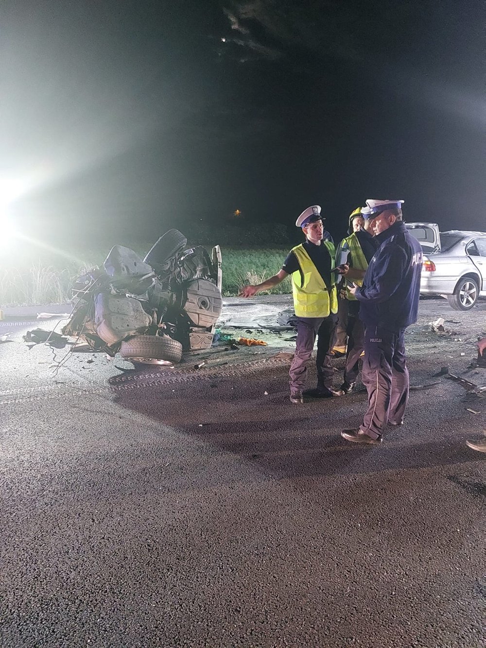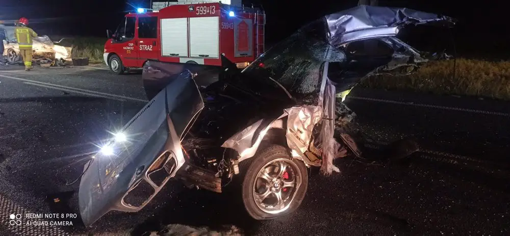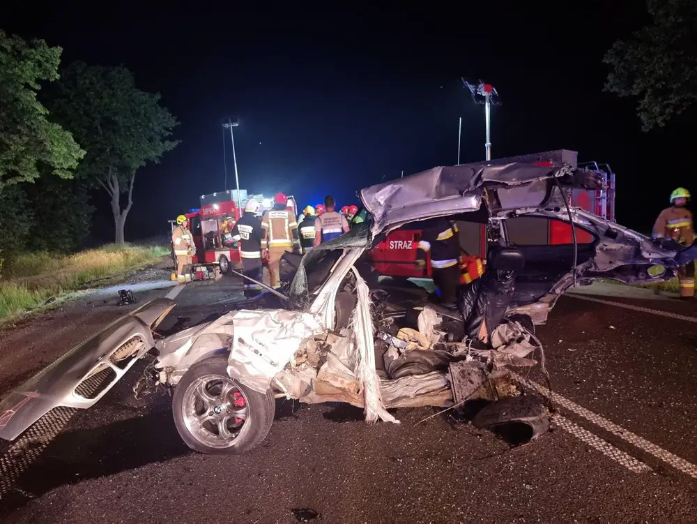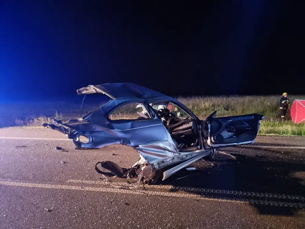 Siła zderzenia samochodów była ogromna. Jedno bmw zostało rozerwane. Niestety na miejscu zmarł 19-latek. Kierujący oraz pasażerka drugiego samochodu ciężko ranni trafili do szpitala.