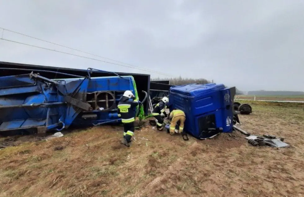 Na miejsce bardzo szybko dotarły służby ratunkowe. Strażacy po dojeździe natychmiast zabezpieczyli miejsce wypadku. Konieczne okazało się również użycie specjalistycznego sprzętu hydraulicznego by wykonać dostęp do zakleszczonego mężczyzny (kierowcy ciężarówki).
