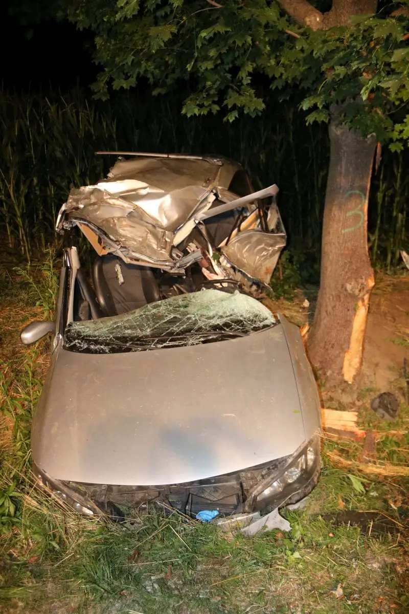 Około godziny 23.00 kierujący renault, na prostym odcinku drogi zjechał na pobocze i z ogromną prędkością uderzył w przydrożne drzewo.