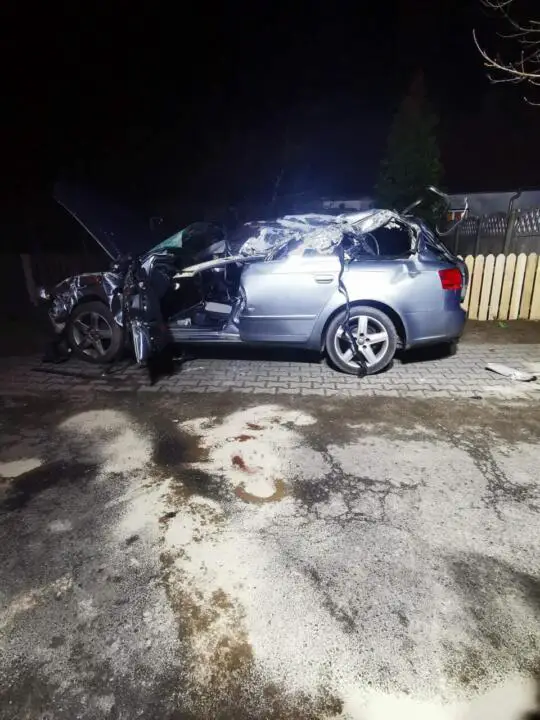 Jedna osoba poszkodowana znajdowała się uwięziona wewnątrz pojazdu, natomiast kierujący samochodem ciężarowym znajdował się w pobliżu.