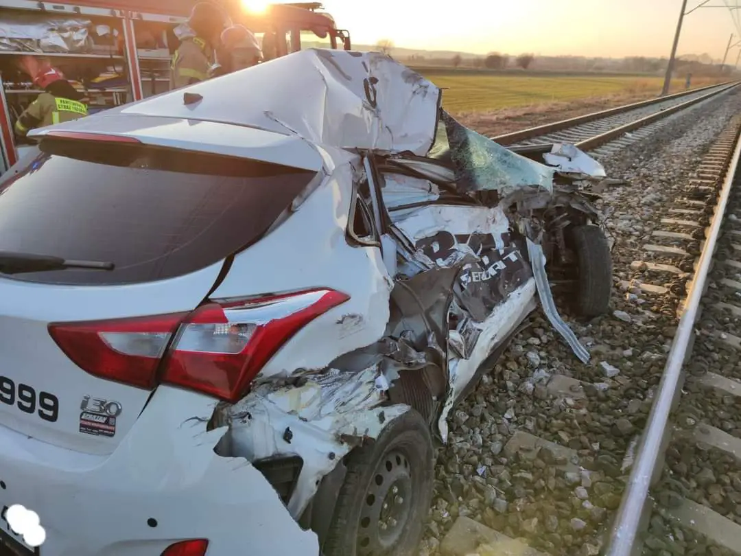 Kierowca samochodu osobowego zginął na miejscu, po tym jak wjechał pod pociąg. Z osobówki został wrak.