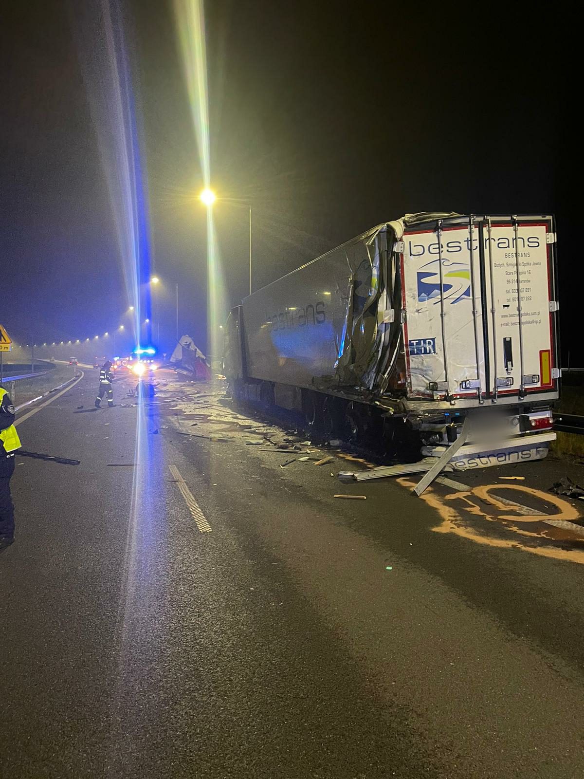 Dwie ciężarówki zderzyły się na drodze ekspresowej S5 w powiecie kościańskim.