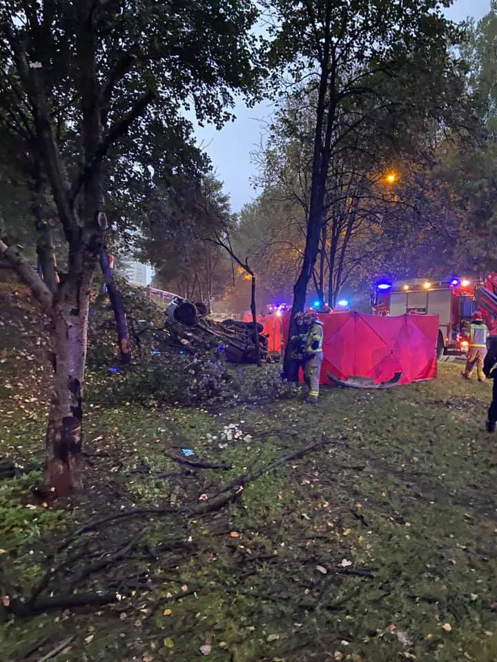 Do śmiertelnego wypadku doszło w czwartek, 7 października, około godziny 6.10 rano na drodze w Katowicach. Opel uderzył w drzewo i dachował. Zginęły dwie osoby.