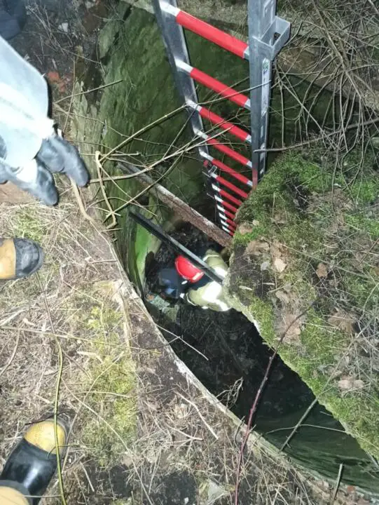 Na miejsce zadysponowany został zastęp straży z JRG nr1 w Koninie. Po przybyciu we wskazane miejsce strażacy potwierdzili treść zgłoszenia. Ze względu na betonowy, ciężki właz, który zwisał nad studzienką na miejsce wezwano również zastęp techniczny z JRG nr2 w Koninie.