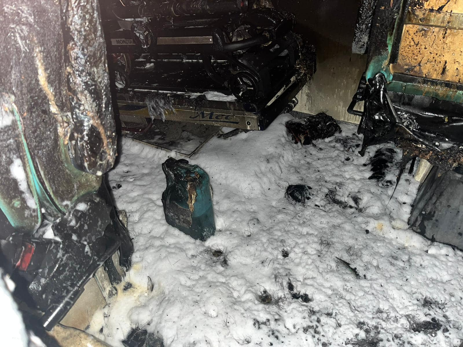 Po dojeździe na miejsce zdarzenia zastępów straży zastano pożar dwóch samochodów dostawczych – prywatne karetki pogotowia przeznaczone do transportu sanitarnego osób. Fiat Doblo objęty był pożarem w całości. Drugi pojazd Volkswagen Crafter objęty był pożarem w przedziale medycznym karetki.
