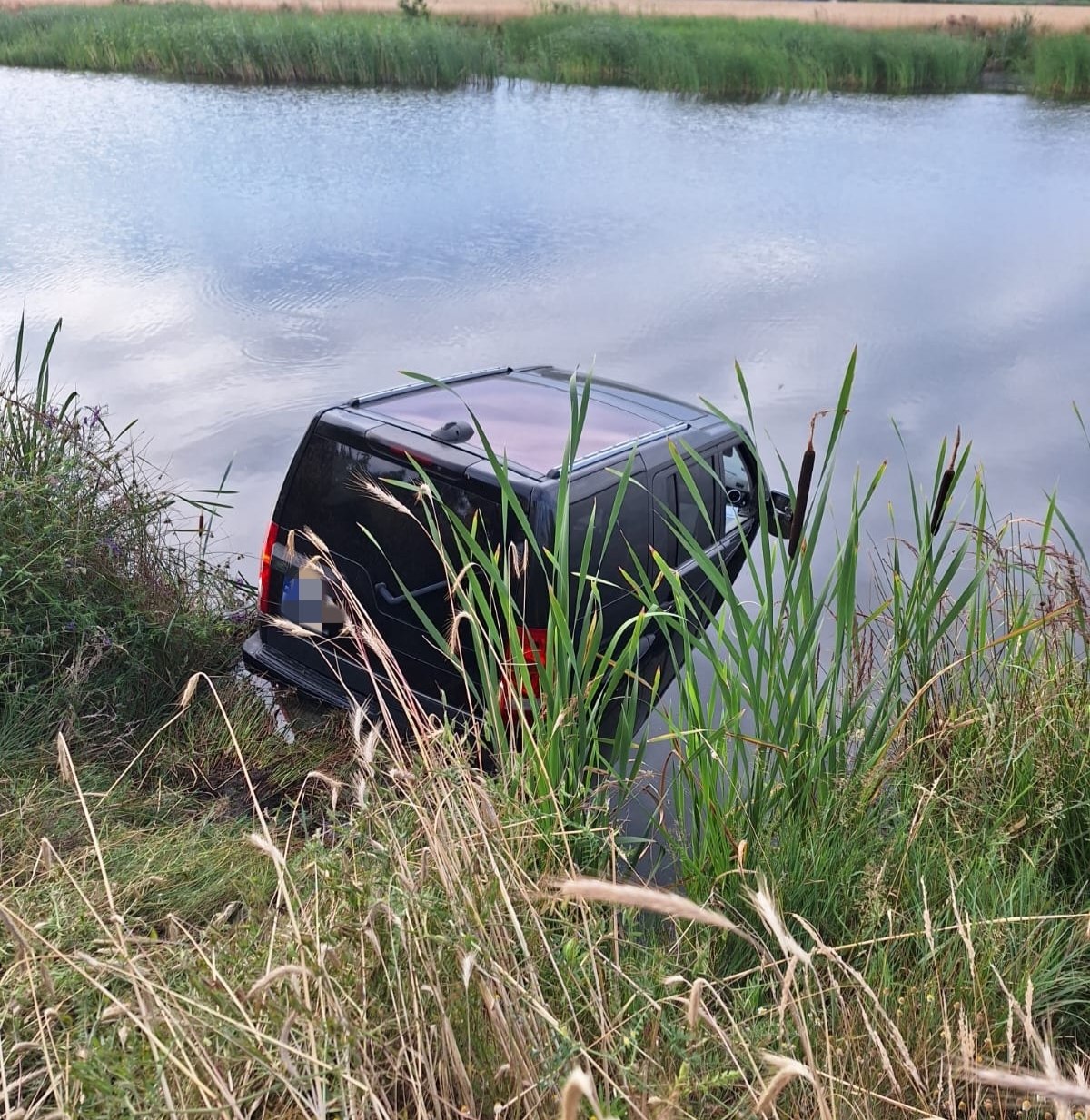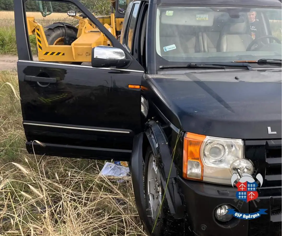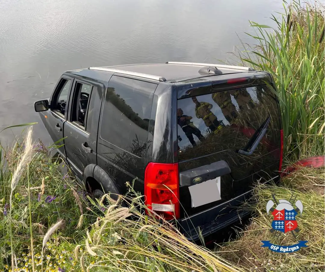 Samochód osobowy marki Land Rover Discovery 3 częściowo wjechał do zbiornika wodnego. Kierowcy nic się nie stało. Gdy strażacy przybyli na miejsce znajdował się poza pojazdem i odmówił udzielenia pomocy.