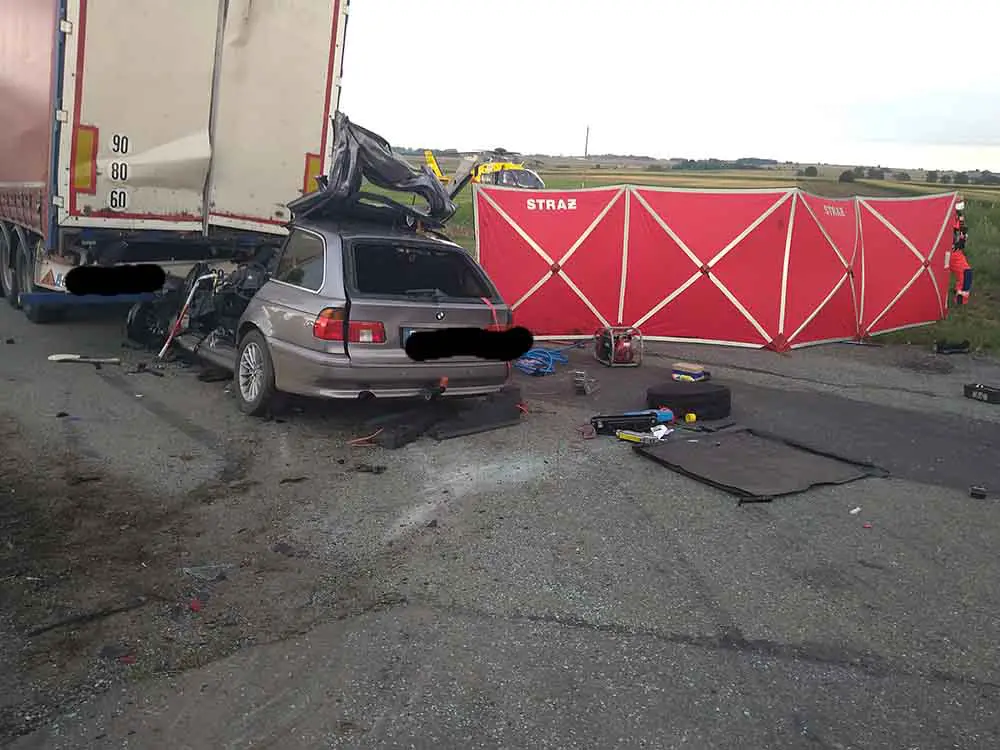 Do tragedii doszło w czwartek, 3 września na trasie w okolicach miejscowości Trzebnik. 28-latek jadący bmw uderzył w tył naczepy ciężarówki. Siła była ta duża, że samochód wbił się pod naczepę. Na miejsce zdarzenia szybko dotarły wozy straży pożarnej i policja. Wylądował również śmigłowiec lotniczego pogotowia ratunkowego. Niestety 28-latek z bmw nie przeżył tak potężnego zderzenia z naczepą. Policjanci wyjaśniają dokładny przebieg oraz okoliczności w jakich doszło do tragedii.