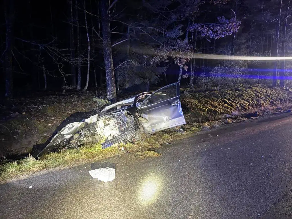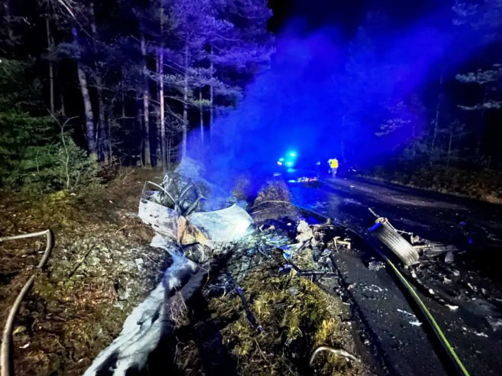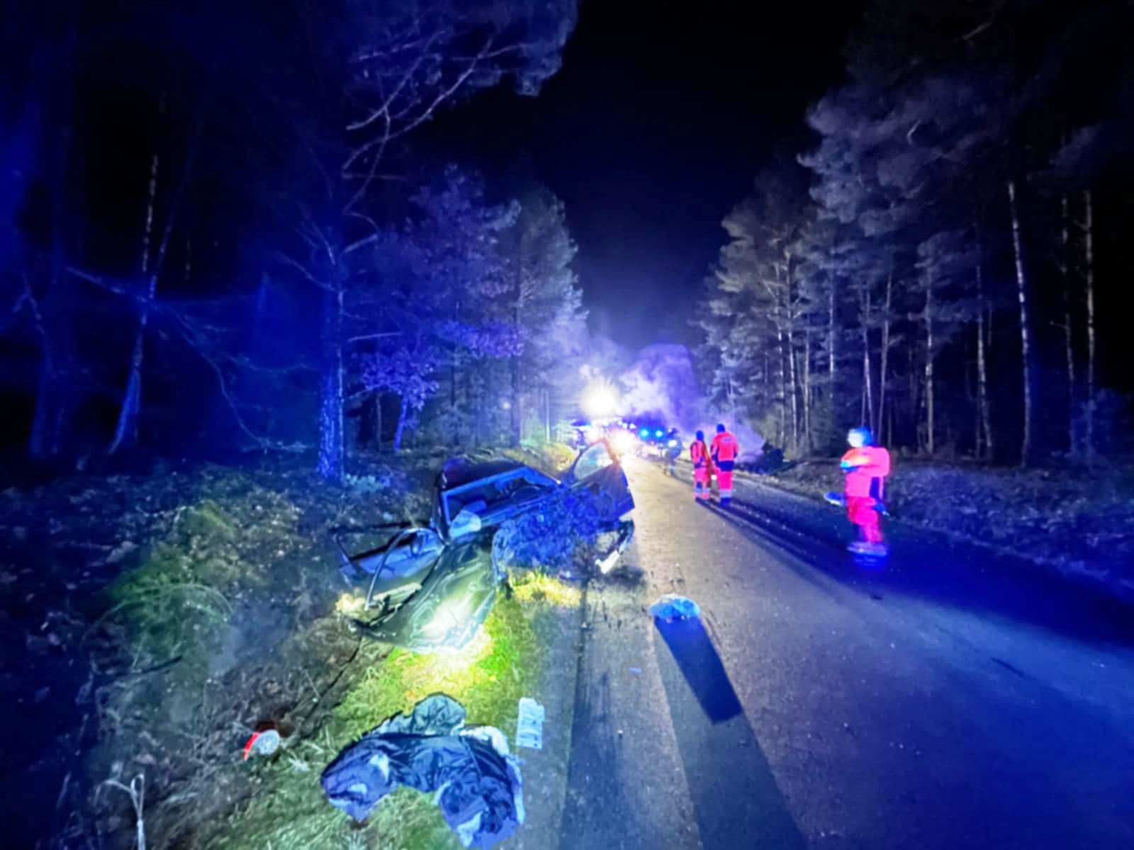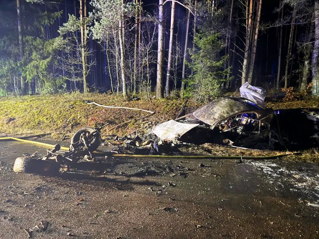 Na prostym odcinku drogi z niewyjaśnionych jeszcze przyczyn doszło do czołowego zderzenia Skody i Volkswagena. Siła uderzenia była tak duża, że Skoda stanęła w płomieniach. Na miejsce zdarzenia natychmiast skierowano służby ratunkowe, w tym policję, straż pożarną i pogotowie ratunkowe.
