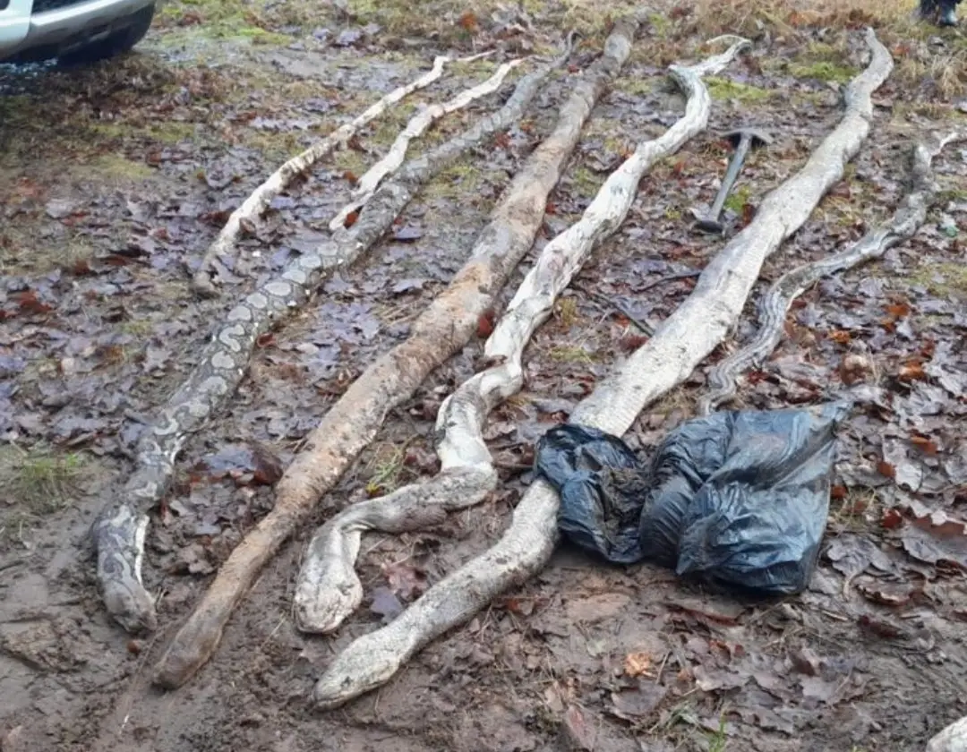 Po przeprowadzeniu oględzin miejsca znalezienia zwierząt oraz wykonaniu sekcji przez biegłego lekarza weterynarii ustalono, że były to węże dusiciele – rodzaju pyton oraz boa mające od 3 do 6 metrów długości. Znajdowały się w różnym stadium rozkładu, a jak wynika z opinii eksperta, przyczyną ich śmierci było uduszenie.