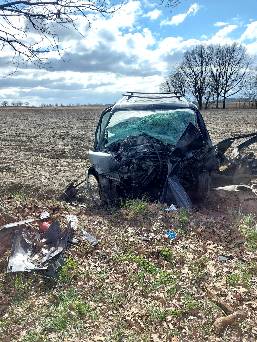 Gdy na miejsce przybyły pierwsze zastępy straży pożarnej potwierdzono zgłoszenie, s zarazem zastano samochód osobowy, który po uderzeniu w drzewo znajdował się na polu.