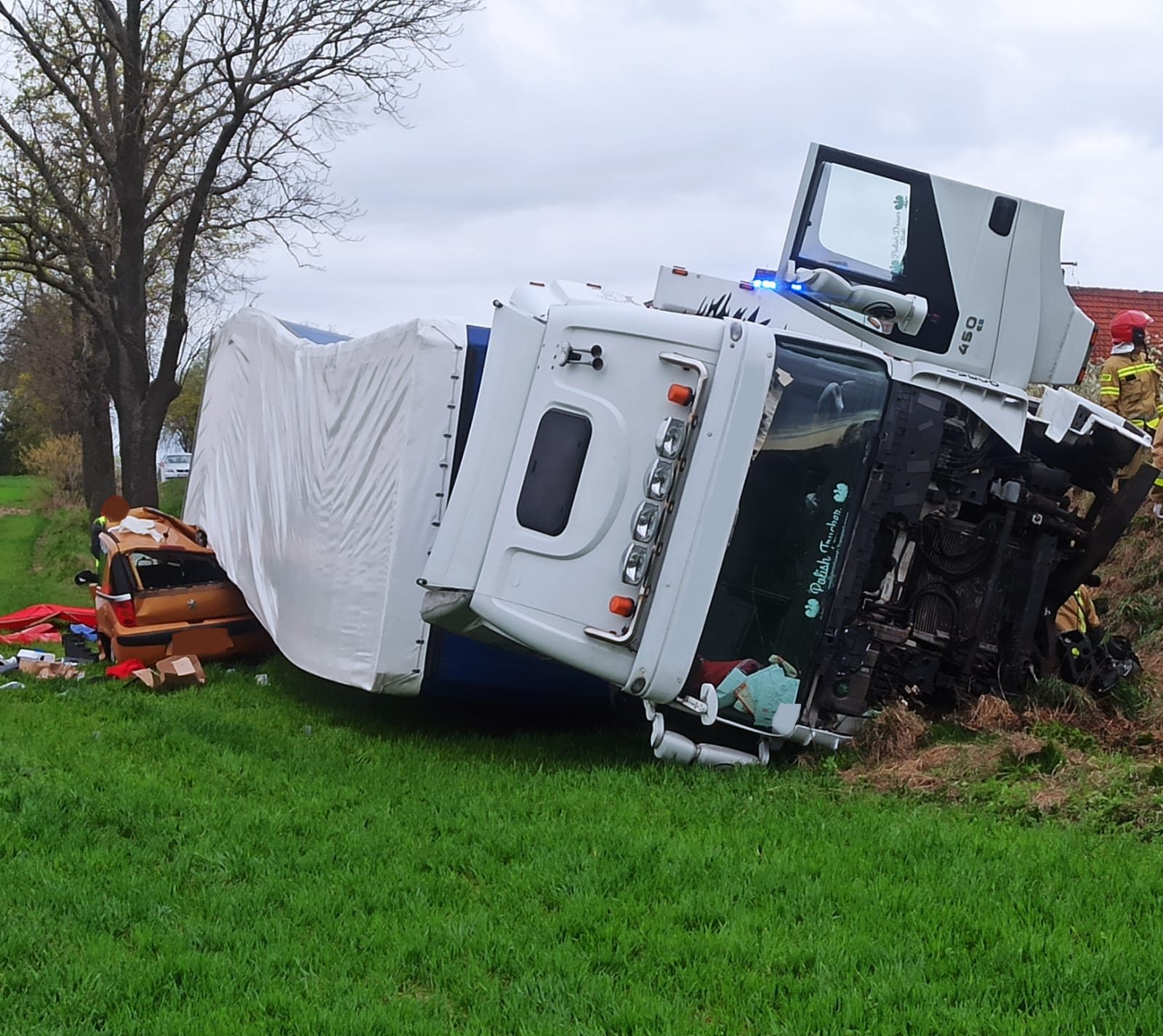 Po dojeździe na miejsce zdarzenia strażacy zastali samochód osobowy marki Peugeot, który znajdował się pod naczepą pojazdu ciężarowego. Kierująca samochodem osobowym znajdowała się uwięziona wewnątrz pojazdu, natomiast kierujący samochodem ciężarowym znajdował się w pobliżu – opuścił pojazd przed przybyciem straży pożarnej – mówi dla portalu wlkp112.pl Łukasz Kawka, z szamotulskiej straży pożarnej