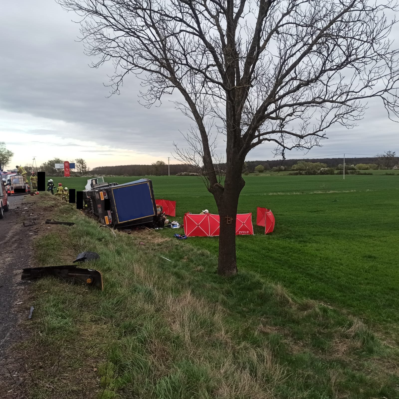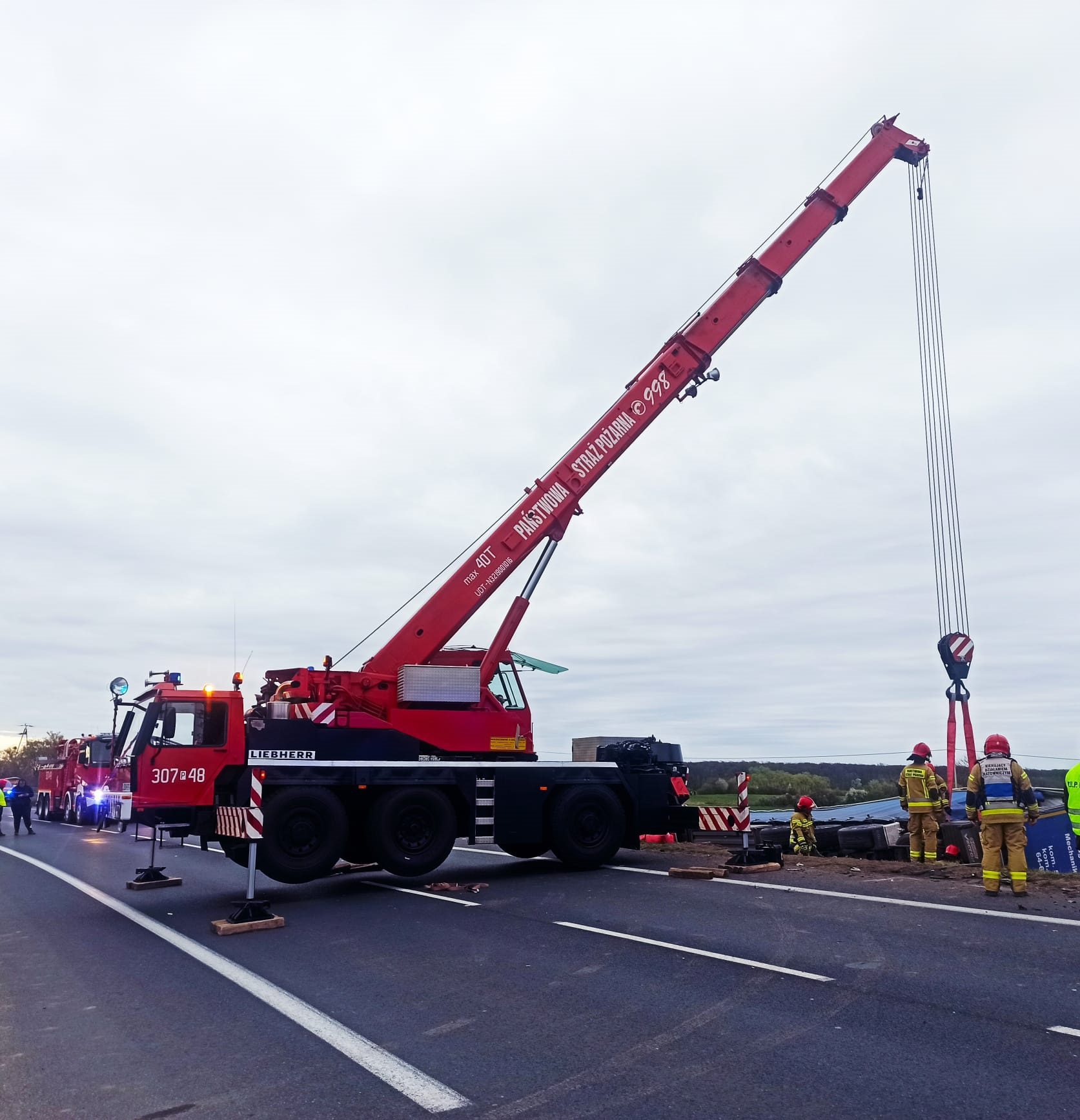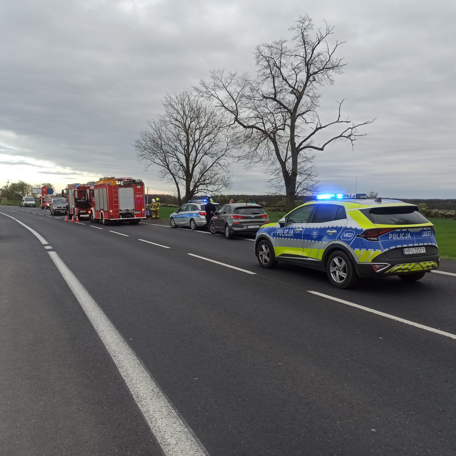 Działania straży pożarnej polegały na zabezpieczeniu miejsca zdarzenia, ocenie stanu osoby poszkodowanej, wykonaniu dostępu przy użyciu sprzętu hydraulicznego do osoby poszkodowanej, wydobyciu osoby z pojazdu i przekazaniu pod opiekę ratowników medycznych, wyznaczeniu i zabezpieczeniu lądowiska dla śmigłowca LPR, podniesieniu i wyciągnięciu pojazdu ciężarowego z rowu, rozłączeniu akumulatorów w uszkodzonych pojazdach, sprawdzeniu pojazdu w celu wykluczenia innych osób w samochodzie, pomocy Policji w kierowaniu ruchem drogowym, oświetleniu terenu działań, sorpcji płynów eksploatacyjnych oraz posprzątaniu drogi z pozostałości po wypadku. Niestety pomimo wysiłku ratowników medycznych i lekarza z LPR nie udało się uratować życia 39-letniej kobiety dodaje Kawka