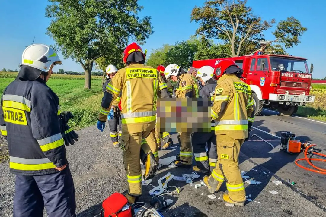 Strażacy po dojeździe na miejsce musieli użyć specjalistycznego sprzętu hydraulicznego, by wykonać dostęp do dwóch rannych osób.